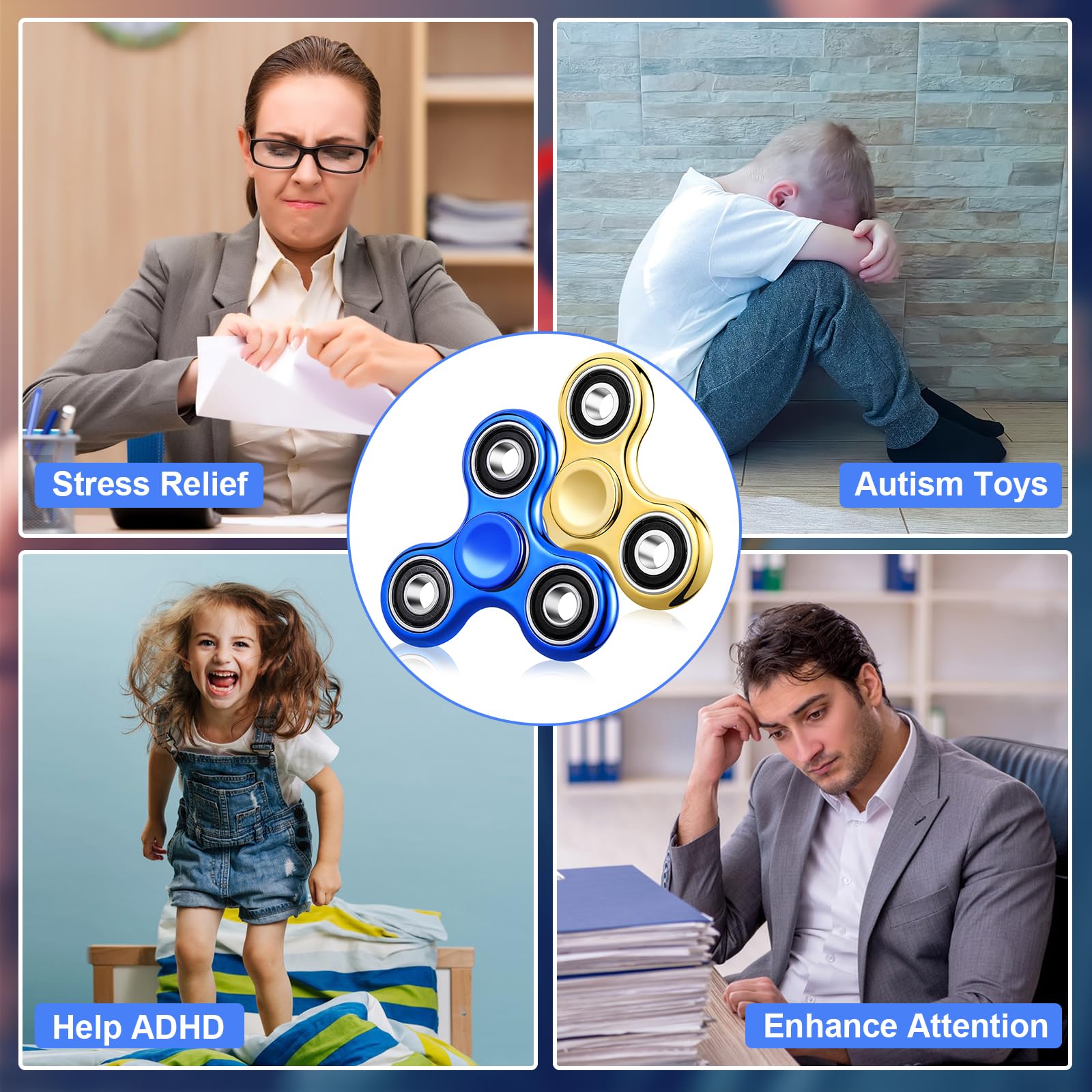 • Amazing Gifts for Kids Adults:Our fidget spinner toys make top party favor goodie bags, classroom prizes, treasure box toys, Valentines day gifts, Easter basket stuffers for kids, Christmas stocking stuffers or surprise birthday gift for kids. Grosses Geschenk, Strumpffüller und Rückkehr Geschenke, Abschluss Geschenke.