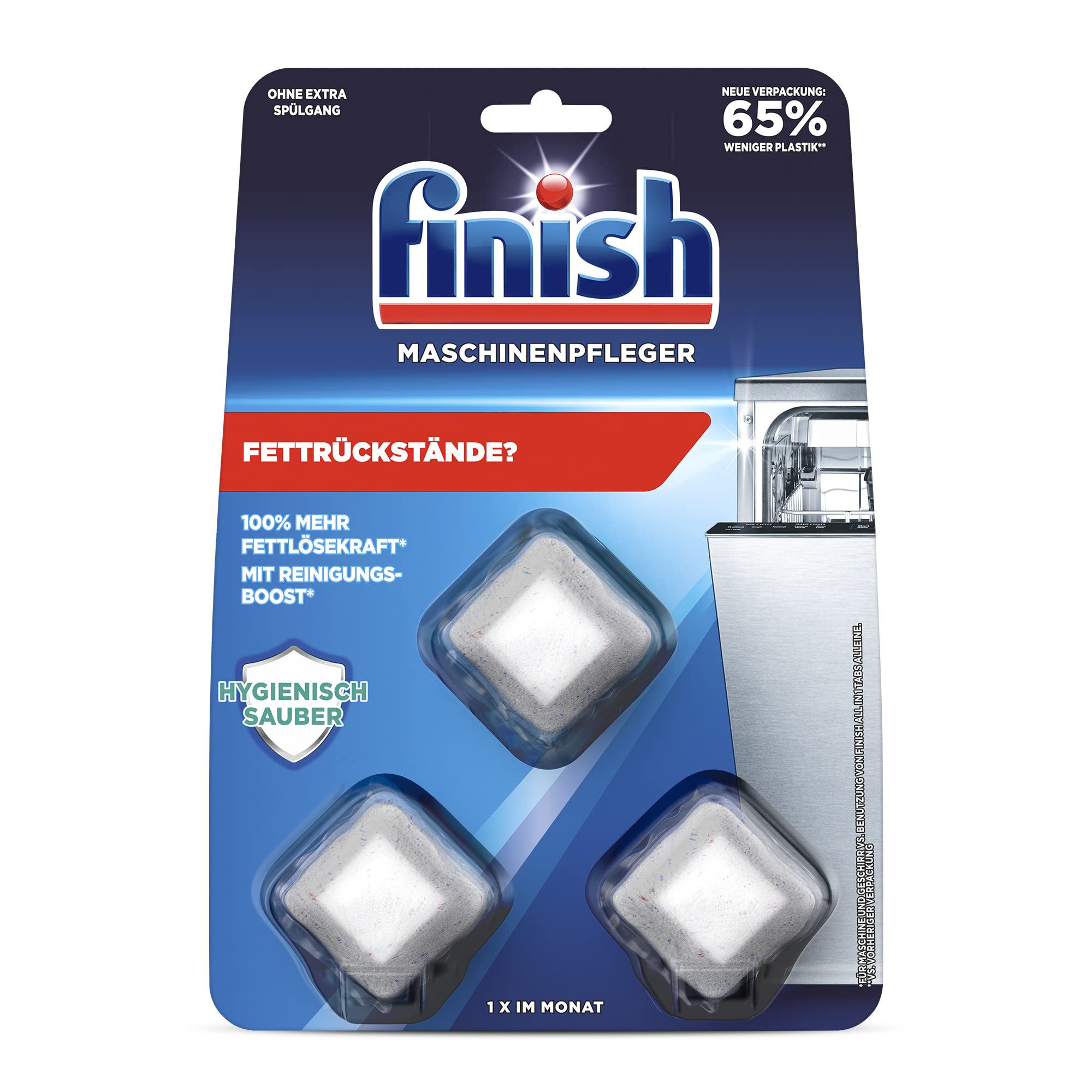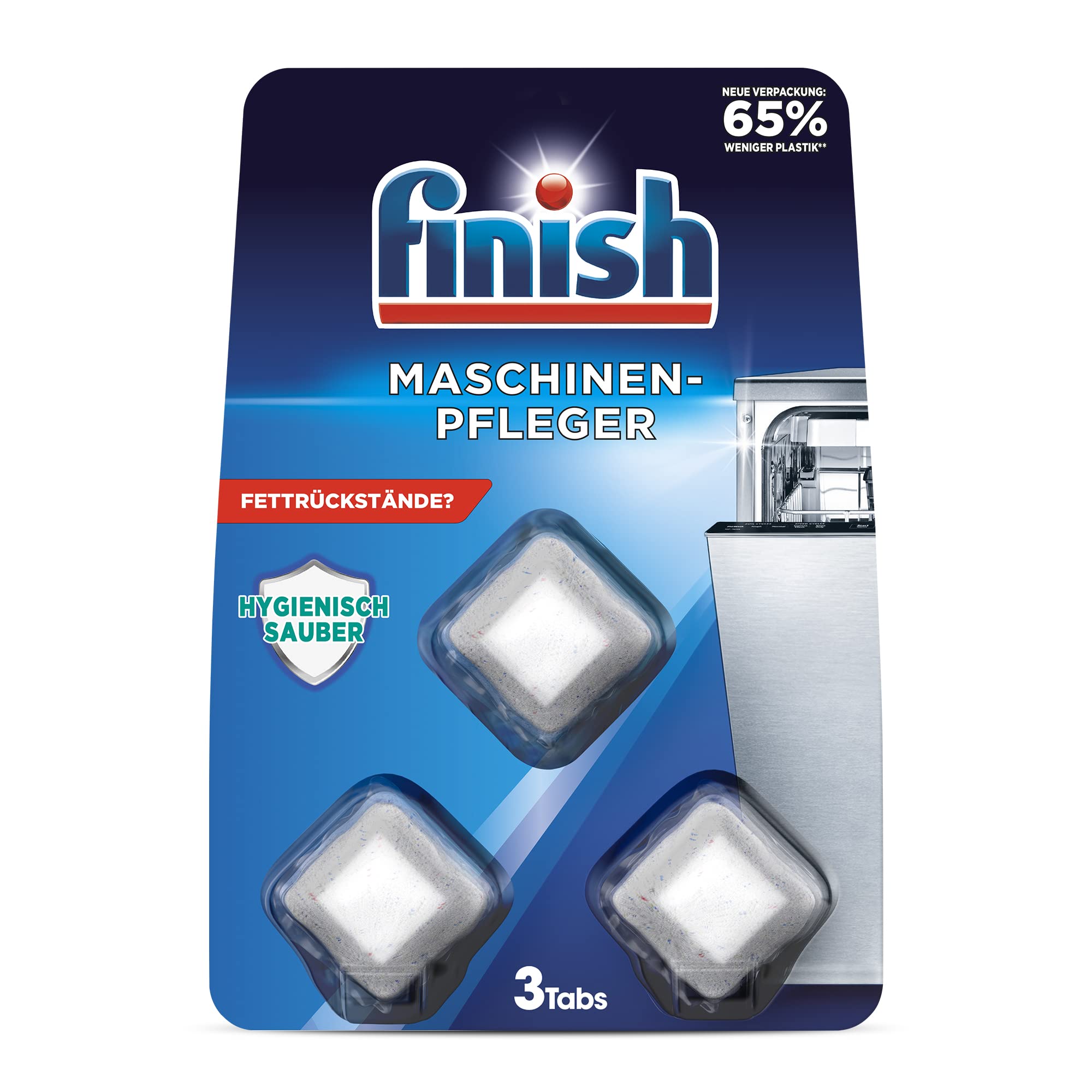 Finish Maschinenpfleger Tabs – Spülmaschinentabs gegen Schmutz und Fett im Inneren der Spülmaschine – 1 x 3 Geschirrspülreiniger Tabs