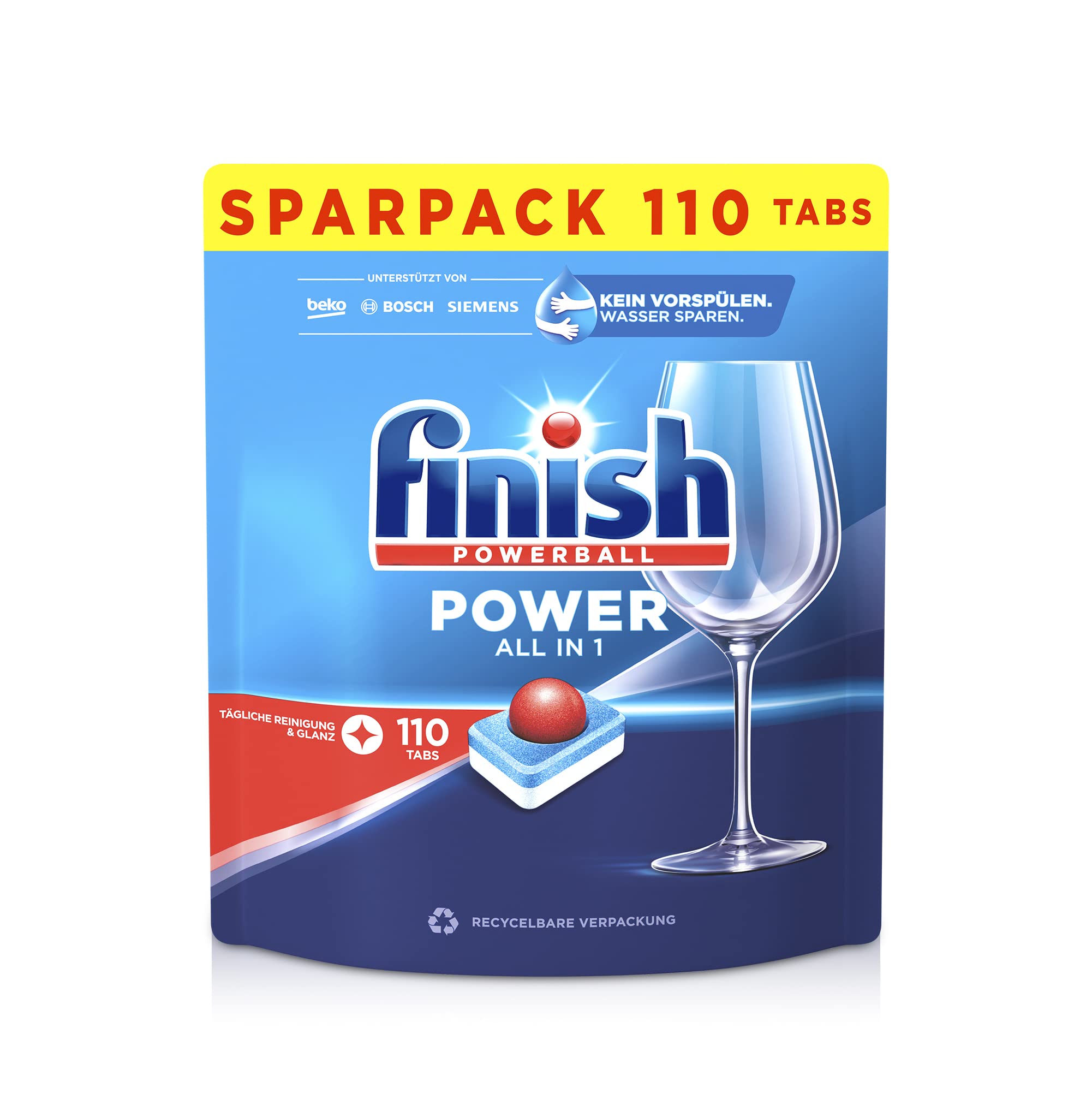 Finish All in 1 Spülmaschinentabs, phosphatfrei – Geschirrspültabs mit kraftvollem Powerball gegen hartnäckigste Fettanschmutzungen – Sparpack mit 110 Finish Tabs