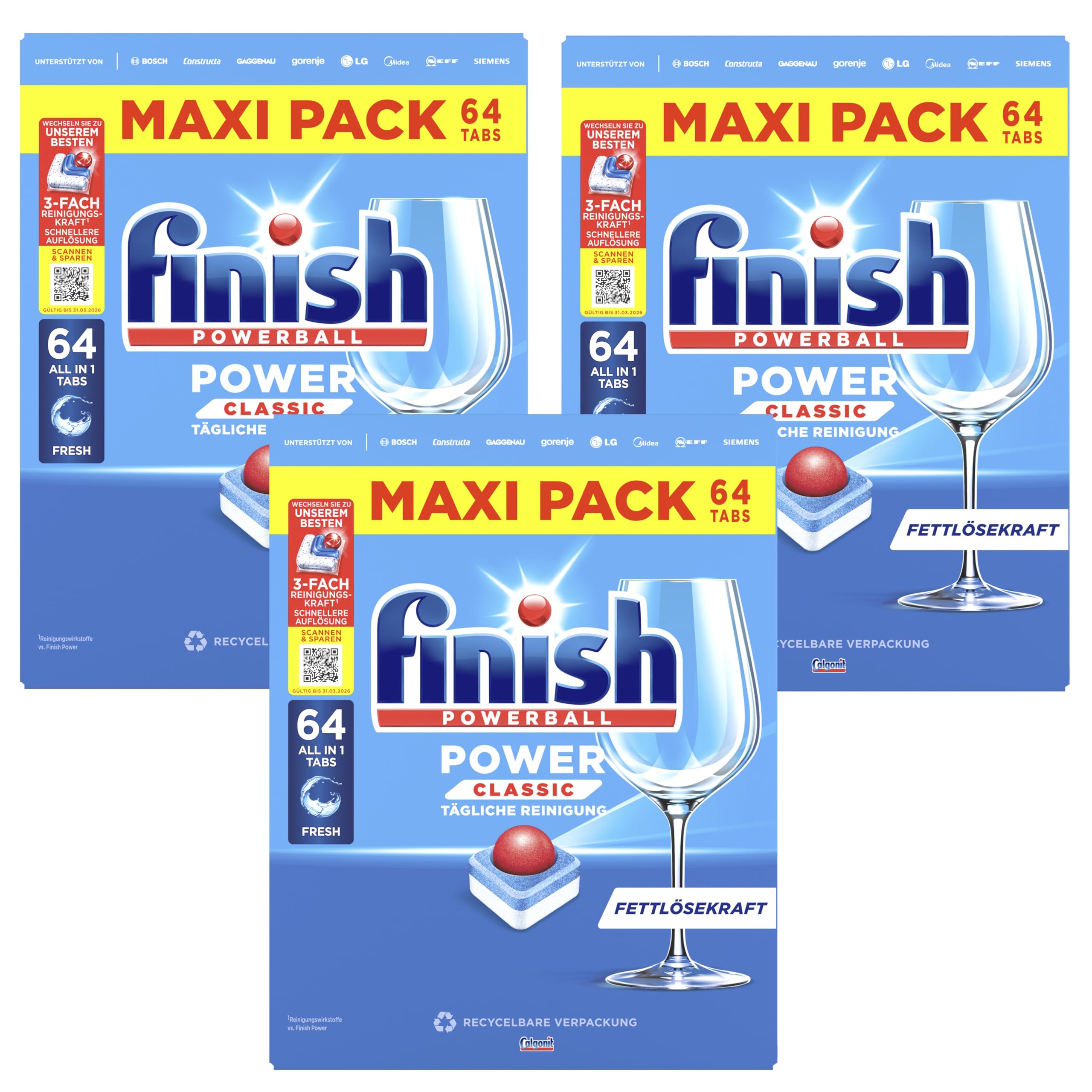 Finish Power Classic Spülmaschinentabs, Maxi Pack, 192 Finish Tabs (3 x 64 Tabs)