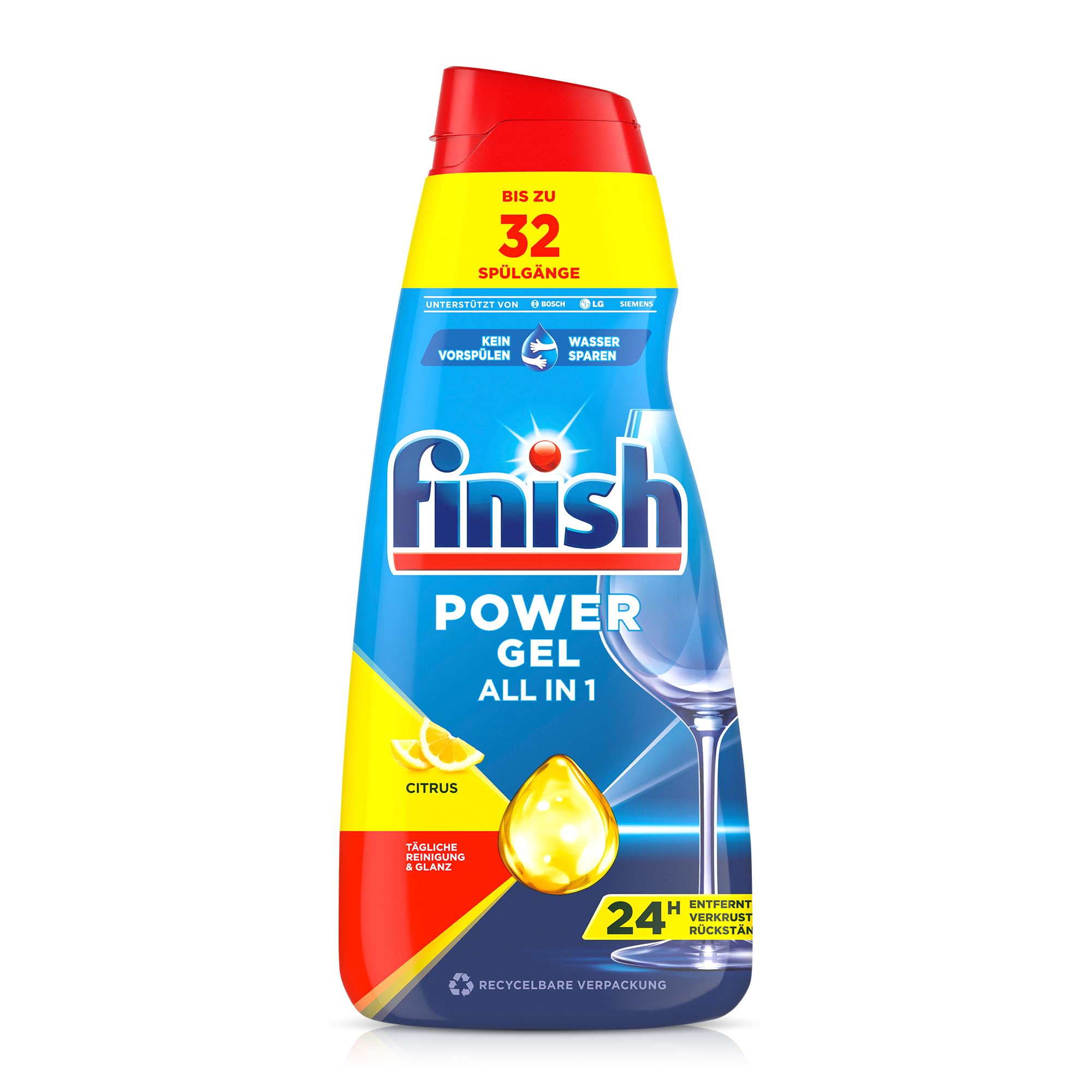 Finish Power Gel Citrus – Flüssiges Geschirrspülmittel für die Spülmaschine – 6 x 650 ml