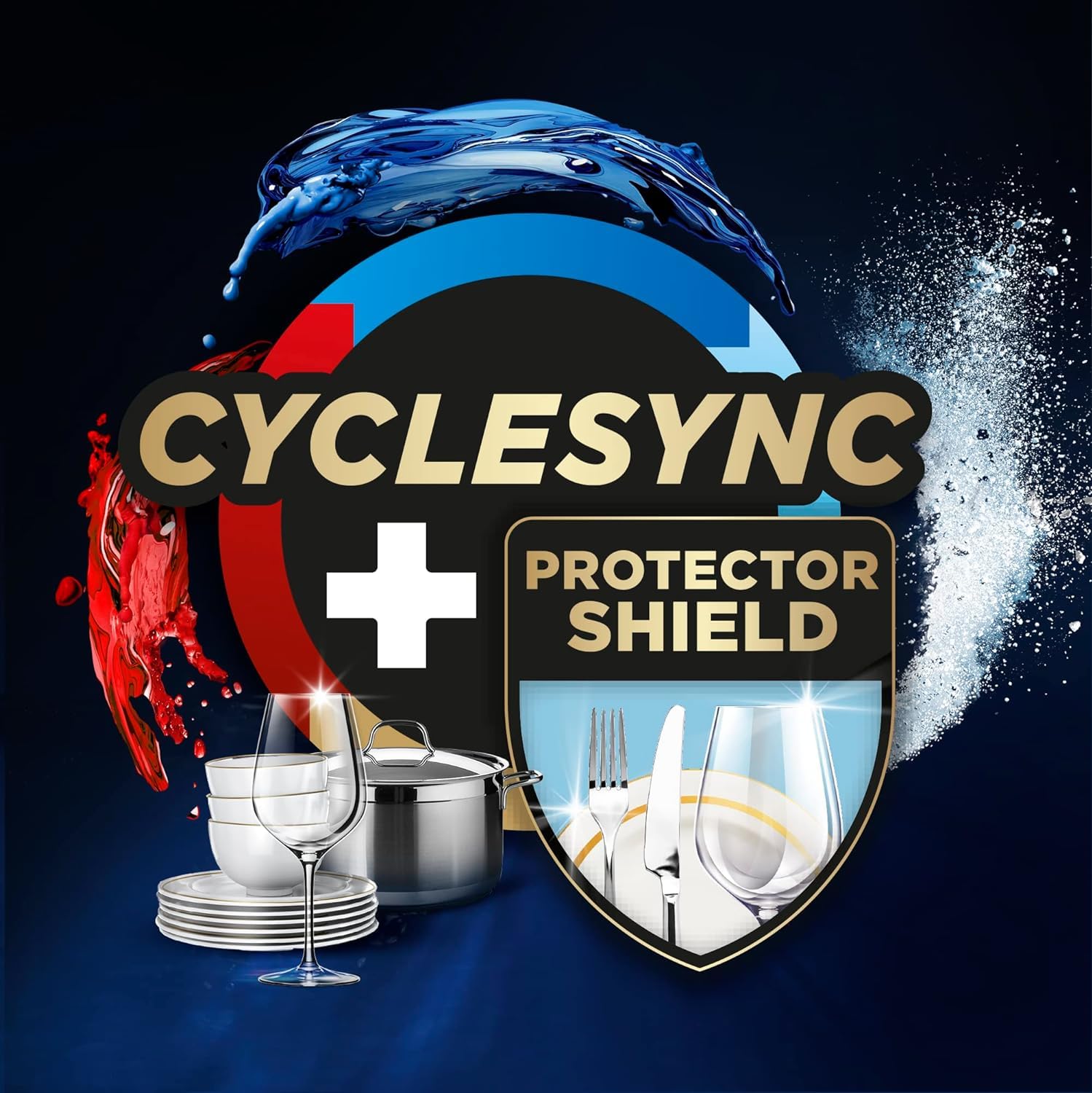 Enzyme (Subtilisin, Amylase), Duftstoffe (LIMONENE, GERANIOL).Sicherheitsinformationen:Verursacht schwere Augenreizung und Hautreizungen.Enthält Subtilisin – kann allergische Reaktionen hervorrufen.Darf nicht in die Hände von Kindern gelangen.Bei Augenkontakt: Einige Minuten mit Wasser spülen, ggf. Kontaktlinsen entfernen, weiter spülen. Bei anhaltender Reizung ärztlichen Rat einholen.Bei Hautkontakt: Mit viel Wasser waschen.Bei Verschlucken sofort einen Arzt aufsuchen.Ist ärztlicher Rat erforderlich, Verpackung oder Etikett bereithalten.Über Finish: