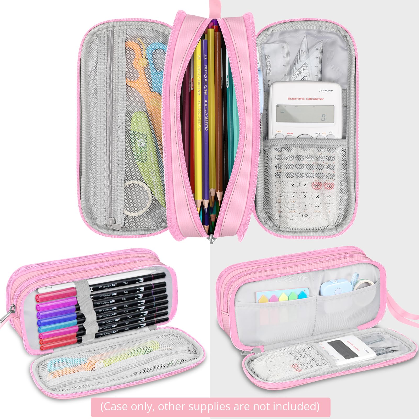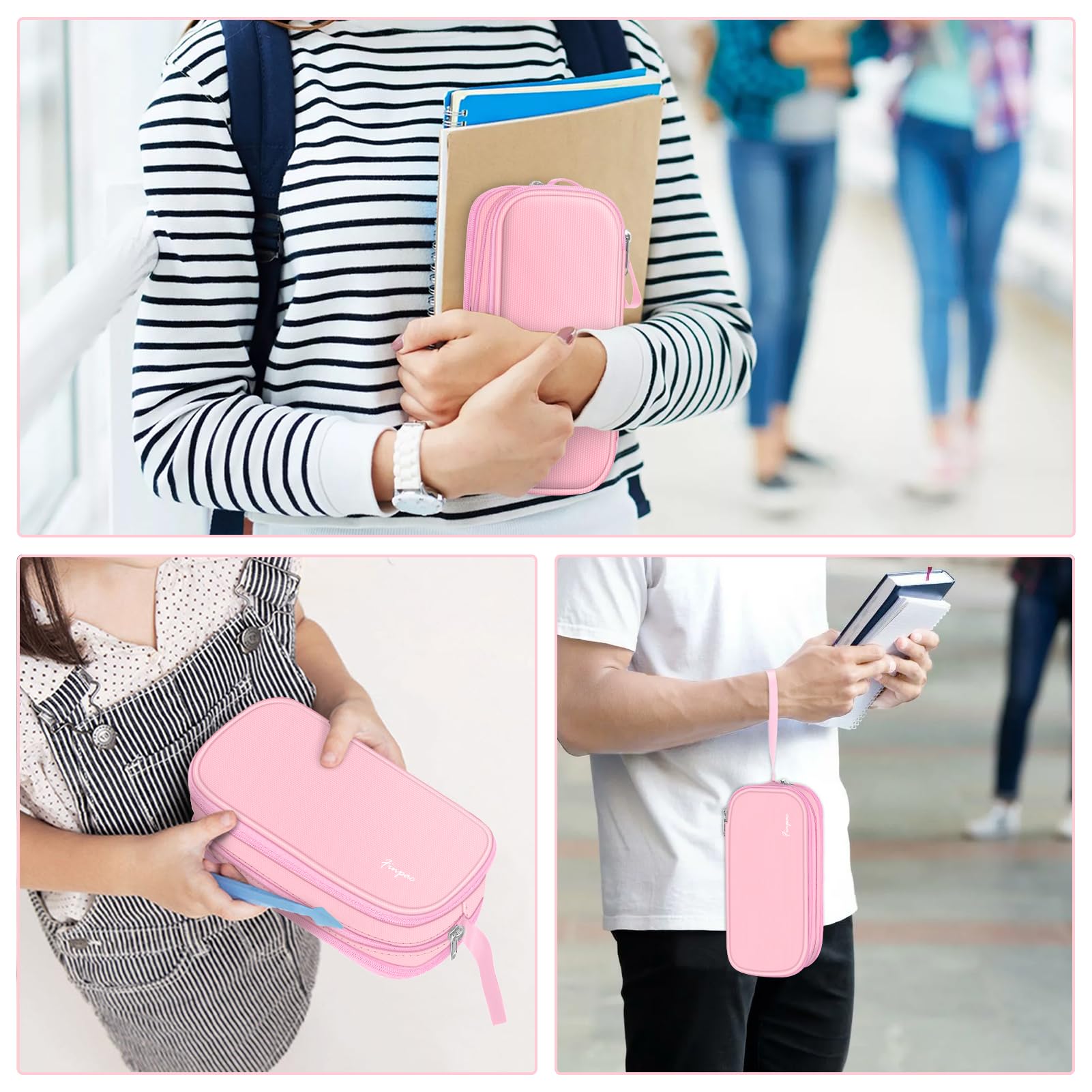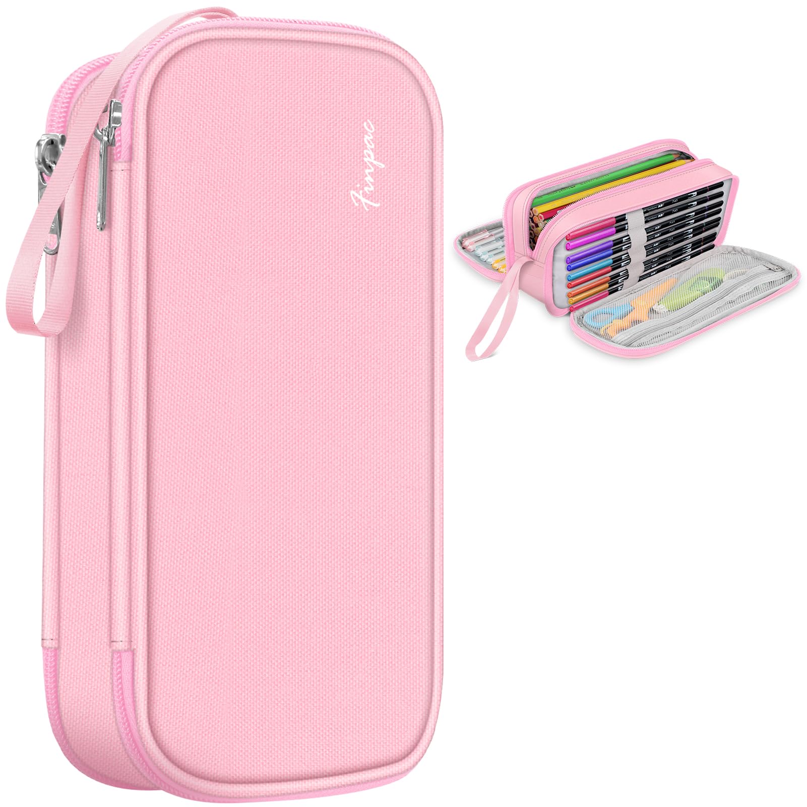 FINPAC Federmäppchen Federtasche - Grosse Kapazität Mäppchen mit 3 Fächer Stiftetasche Schlamperbox Bleistifttasche Schulmäppchen für Schule & Büro, (Rosa)