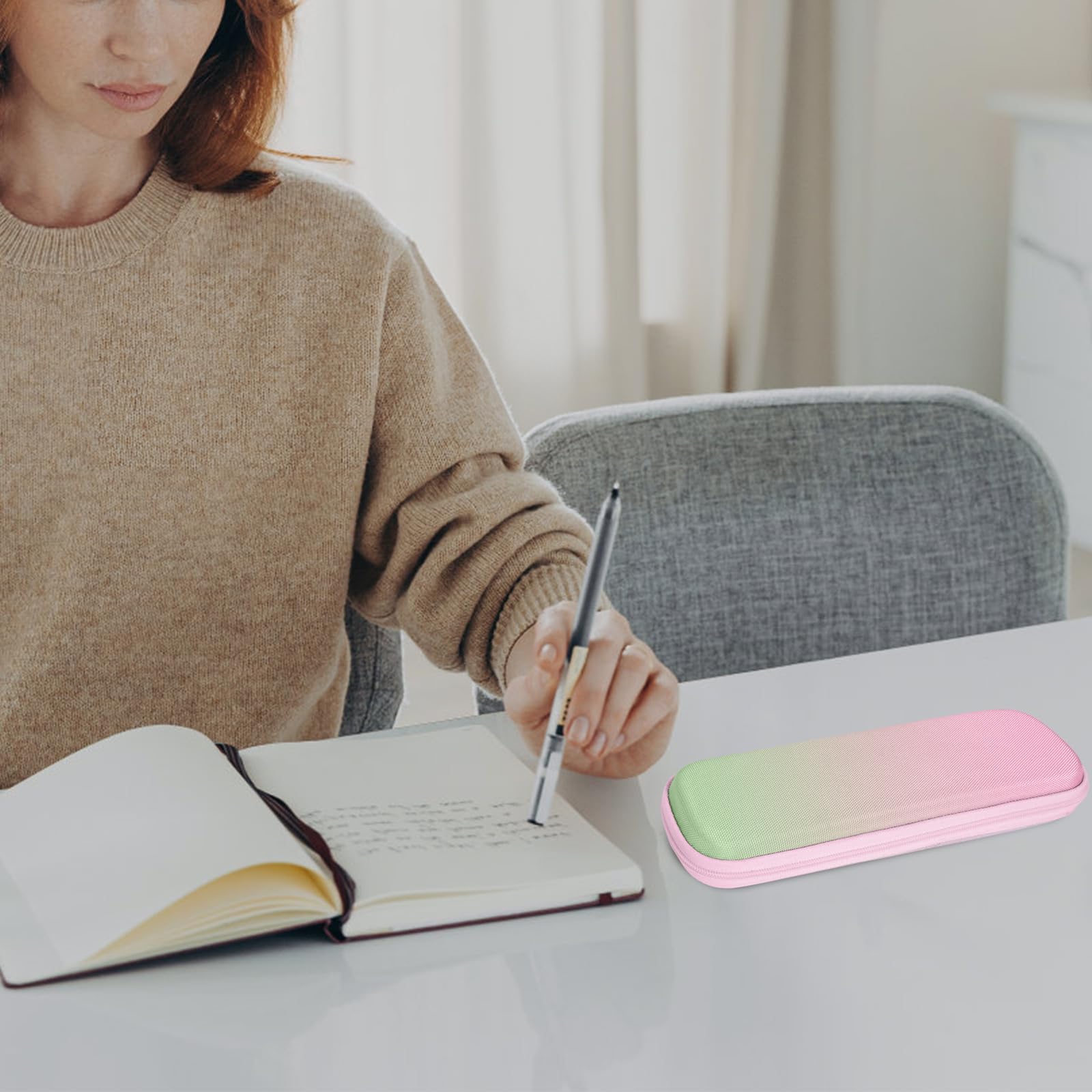 FINPAC Federmäppchen, Federtasche Hart Eva Stift Etui stossfeste Stiftetasche Mäppchen Schlamperbox Bleistifttasche für Executive Füllfederhalter für Büro Schule (Rosa-Grün-Ombré, Klein)
