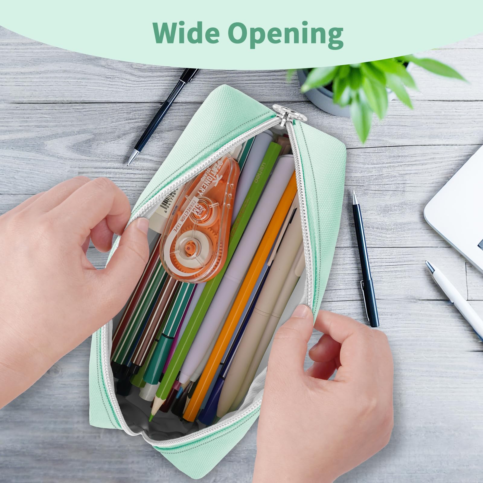 FINPAC Federmäppchen Mäppchen - Grosse Kapazität Federtasche Stiftetasche Schlamperbox Bleistiftbeutel Schulmäppchen für Schule Büro, Don't Touch Grün