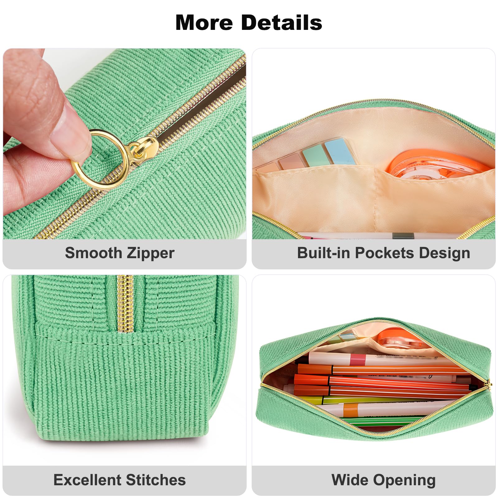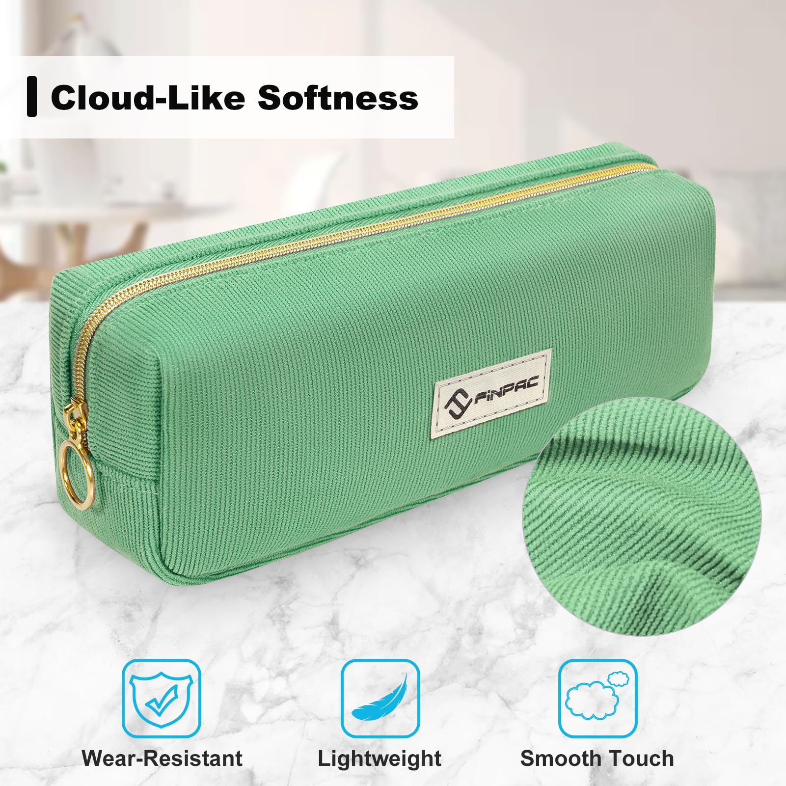 FINPAC Federmäppchen Mäppchen - Grosse Kapazität Federtasche Stiftetasche Schlamperbox Bleistiftbeutel Schulmäppchen für Schule Büro, Cord-Stoff Grün