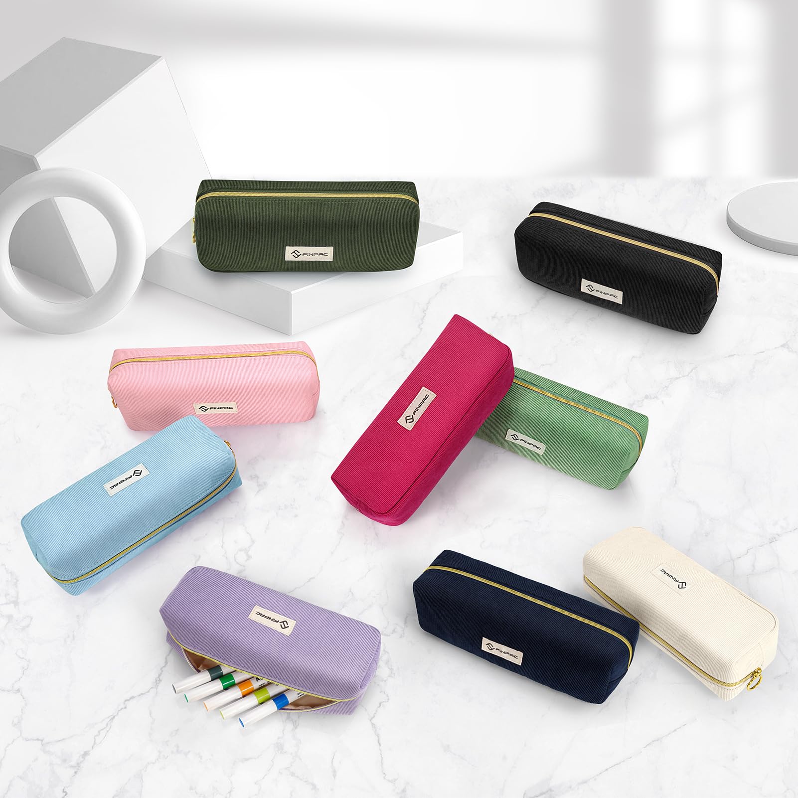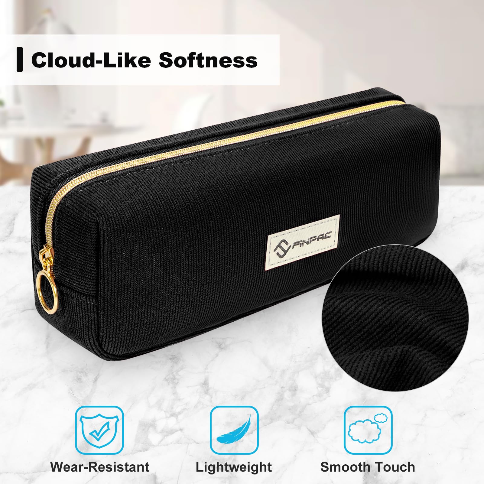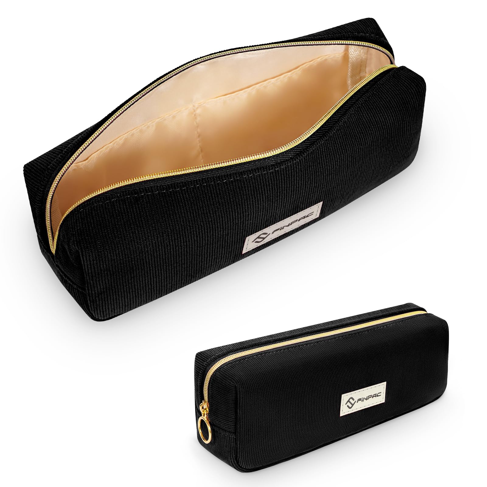 FINPAC Federmäppchen Mäppchen - Grosse Kapazität Federtasche Stiftetasche Schlamperbox Bleistiftbeutel Schulmäppchen für Schule Büro, Cord-Stoff Schwarz