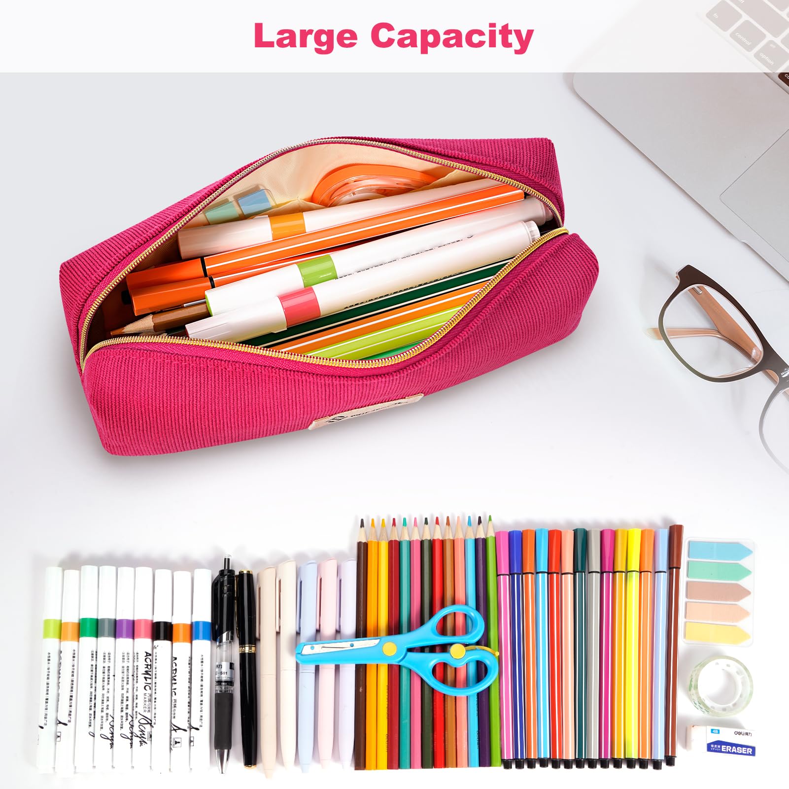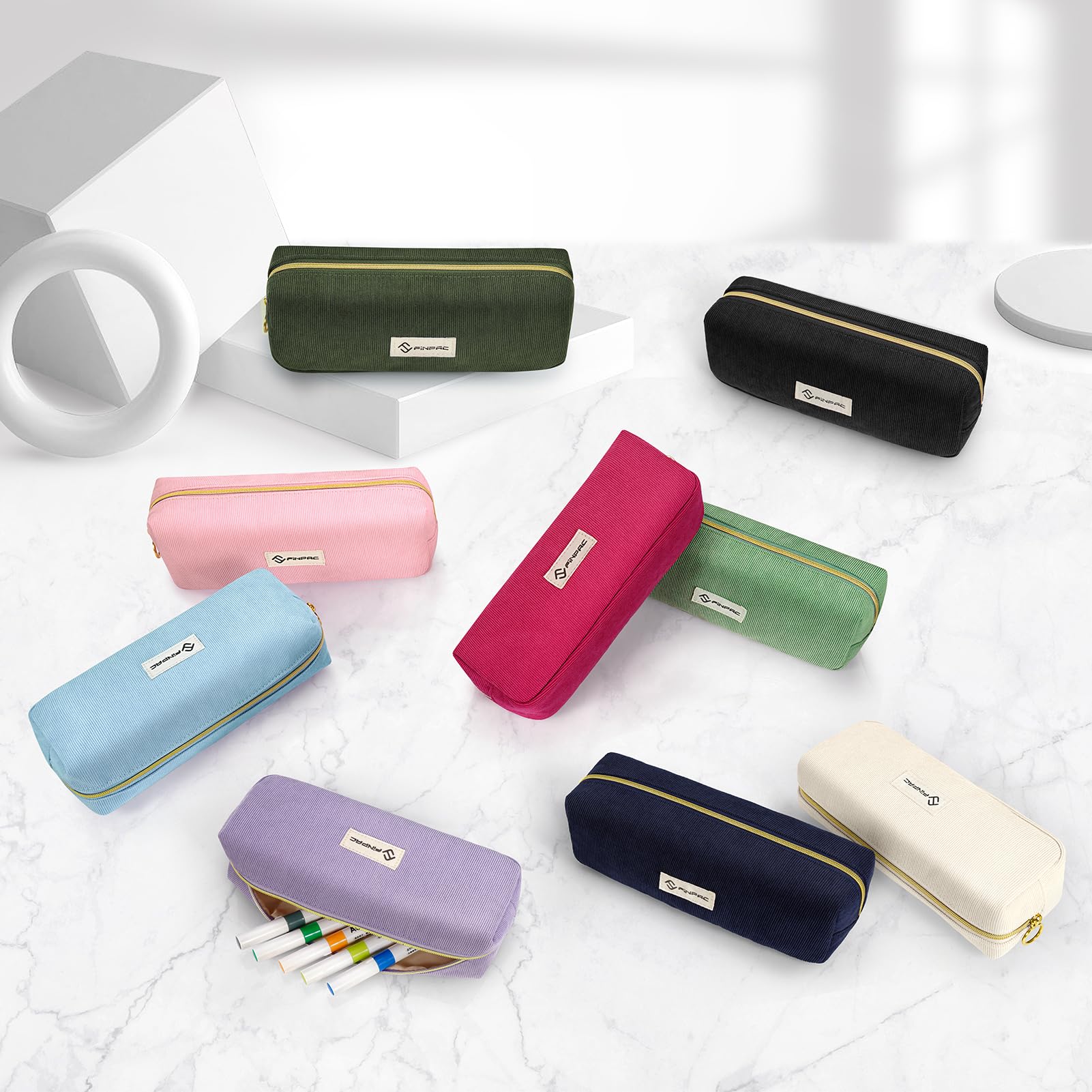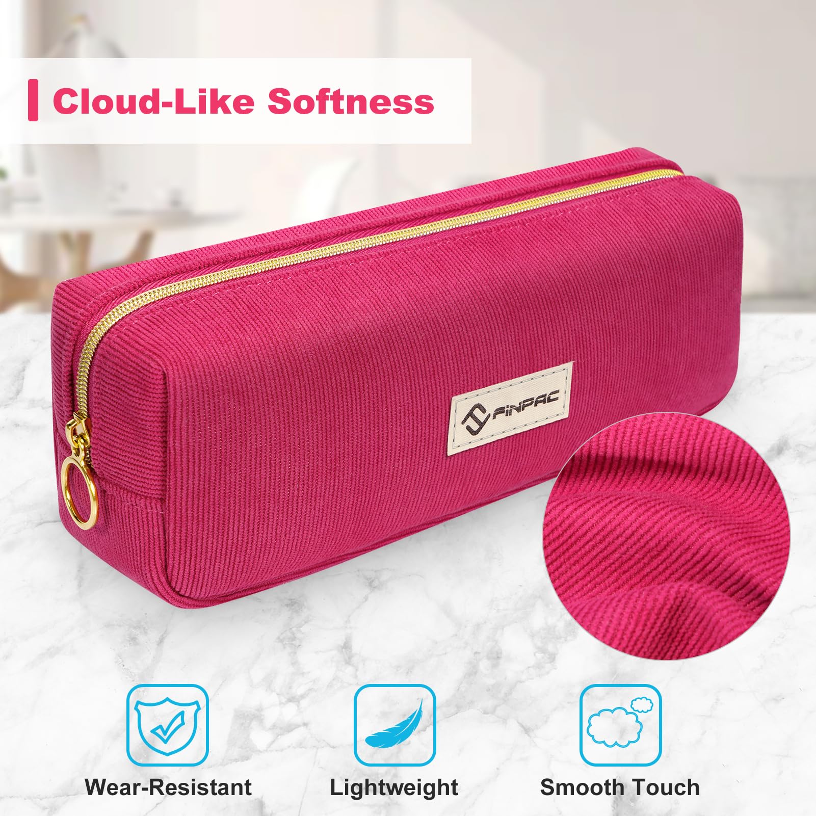 FINPAC Federmäppchen Mäppchen - Grosse Kapazität Federtasche Stiftetasche Schlamperbox Bleistiftbeutel Schulmäppchen für Schule Büro, Cord-Stoff Magenta