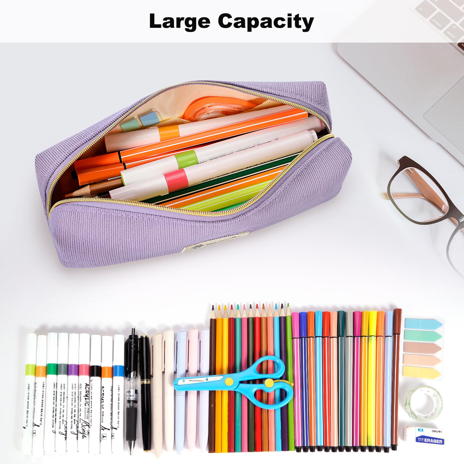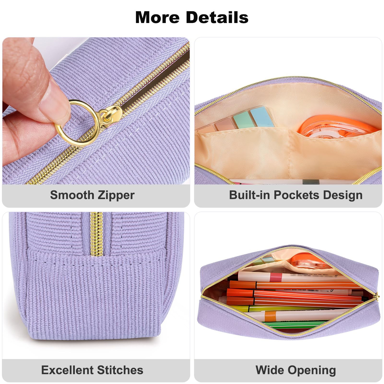 FINPAC Federmäppchen Mäppchen - Grosse Kapazität Federtasche Stiftetasche Schlamperbox Bleistiftbeutel Schulmäppchen für Schule Büro, Cord-Stoff Lilac
