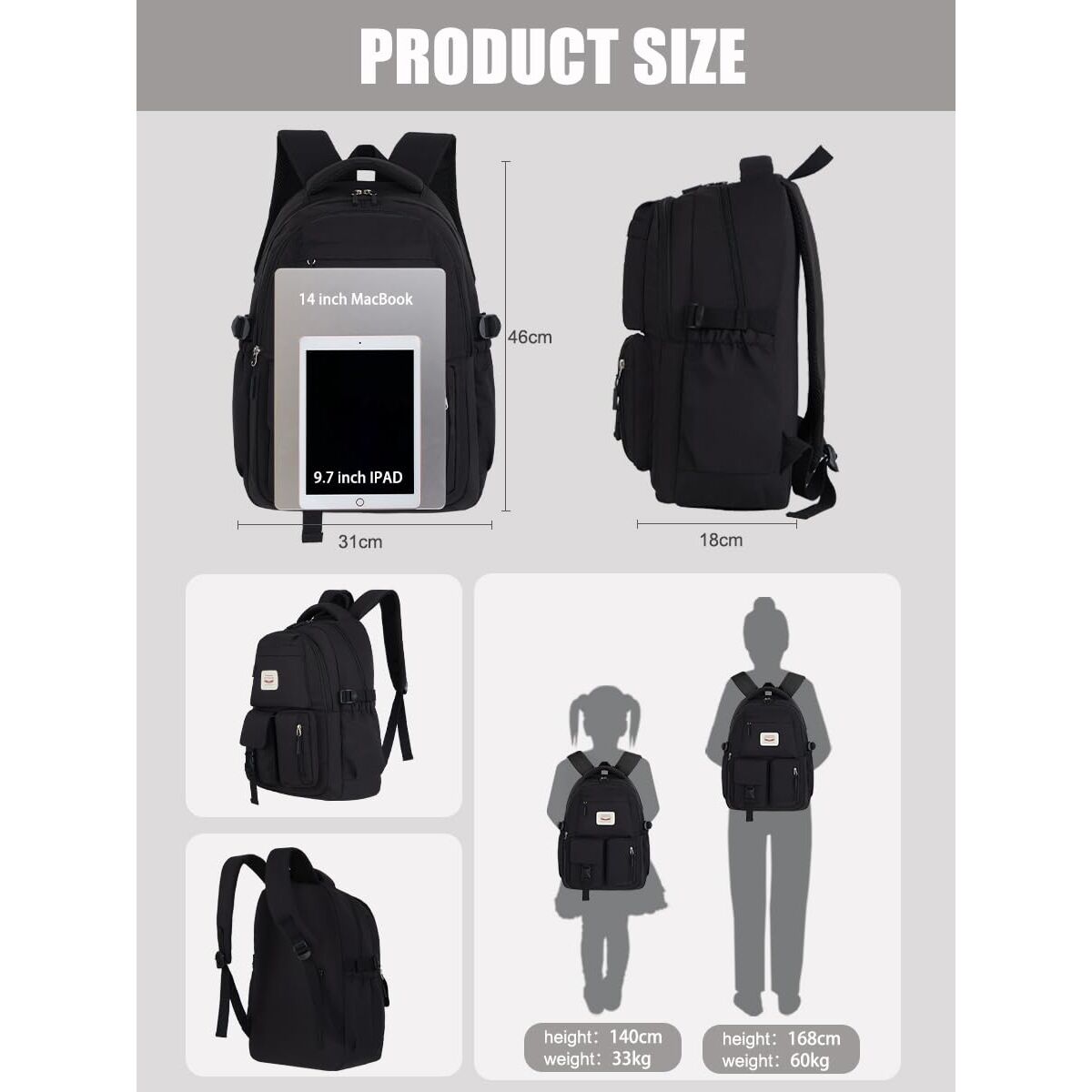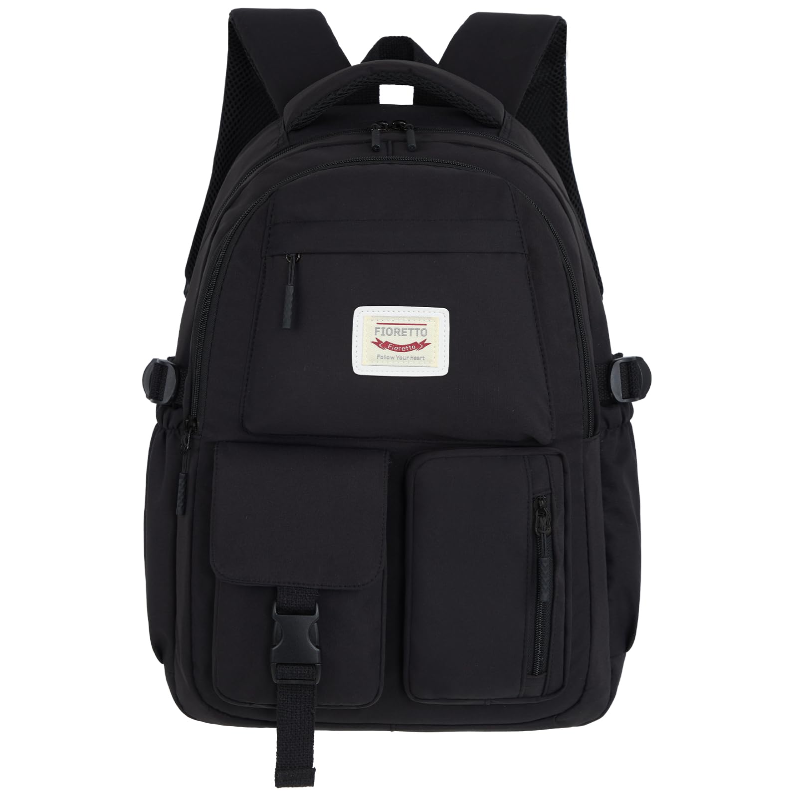 FIORETTO schulrucksack Teenager Mädchen Damen Schulranzen Schultasche School Bag Rucksack Schule 14" Laptopfach, Wasserabweisend & Leicht Schwarz