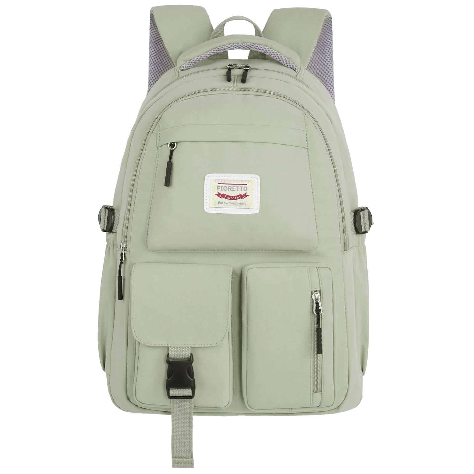 FIORETTO schulrucksack Teenager Mädchen Damen Schulranzen Schultasche School Bag Rucksack Schule 14" Laptopfach, Wasserabweisend & Leicht Grün
