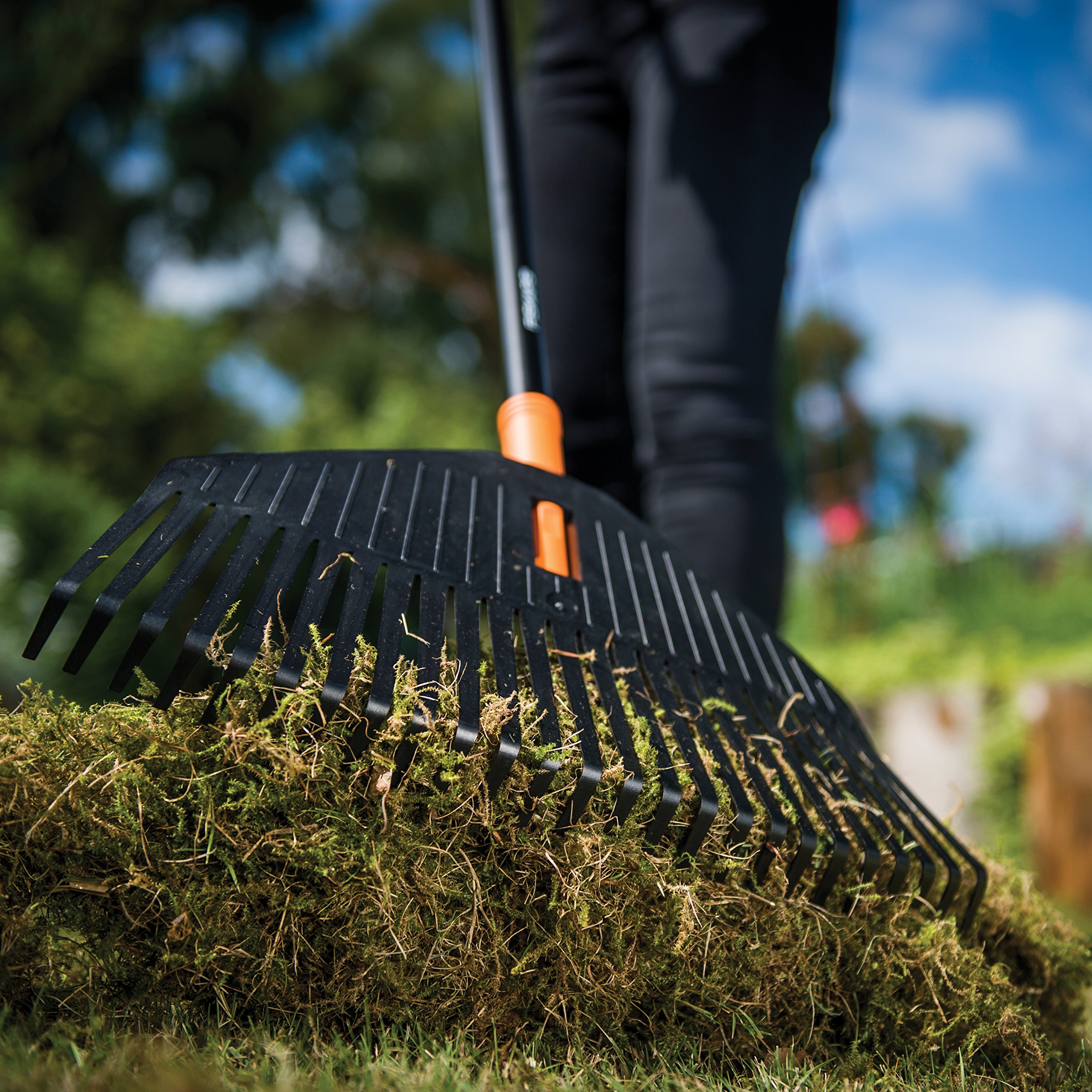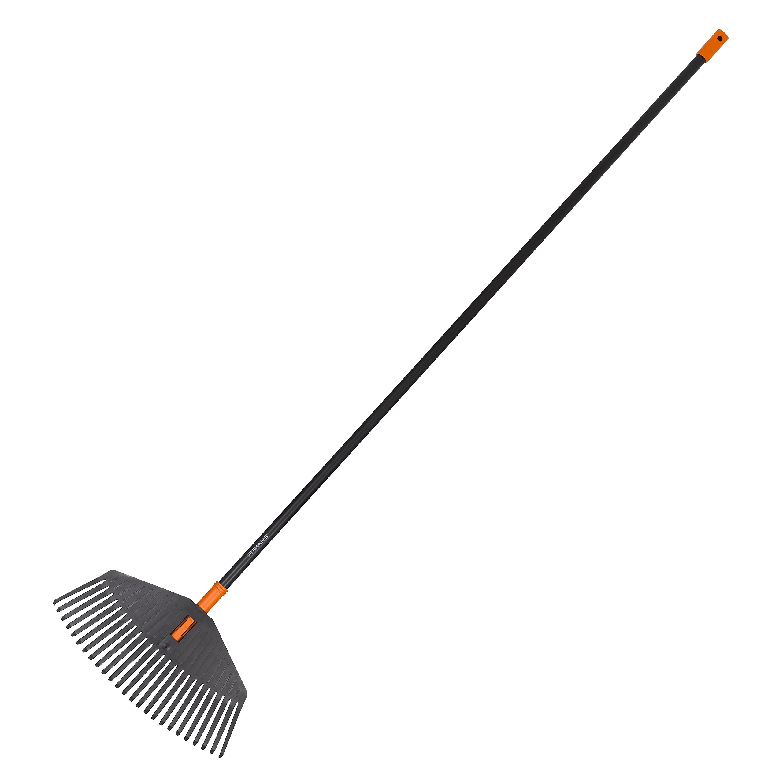Fiskars Laubbesen, 25 Zinken, Länge: 170 cm, Breite: 41,5 cm, Kunststoff-Zinken/Aluminium-Stiel, Schwarz/Orange, M, Solid, 1003464