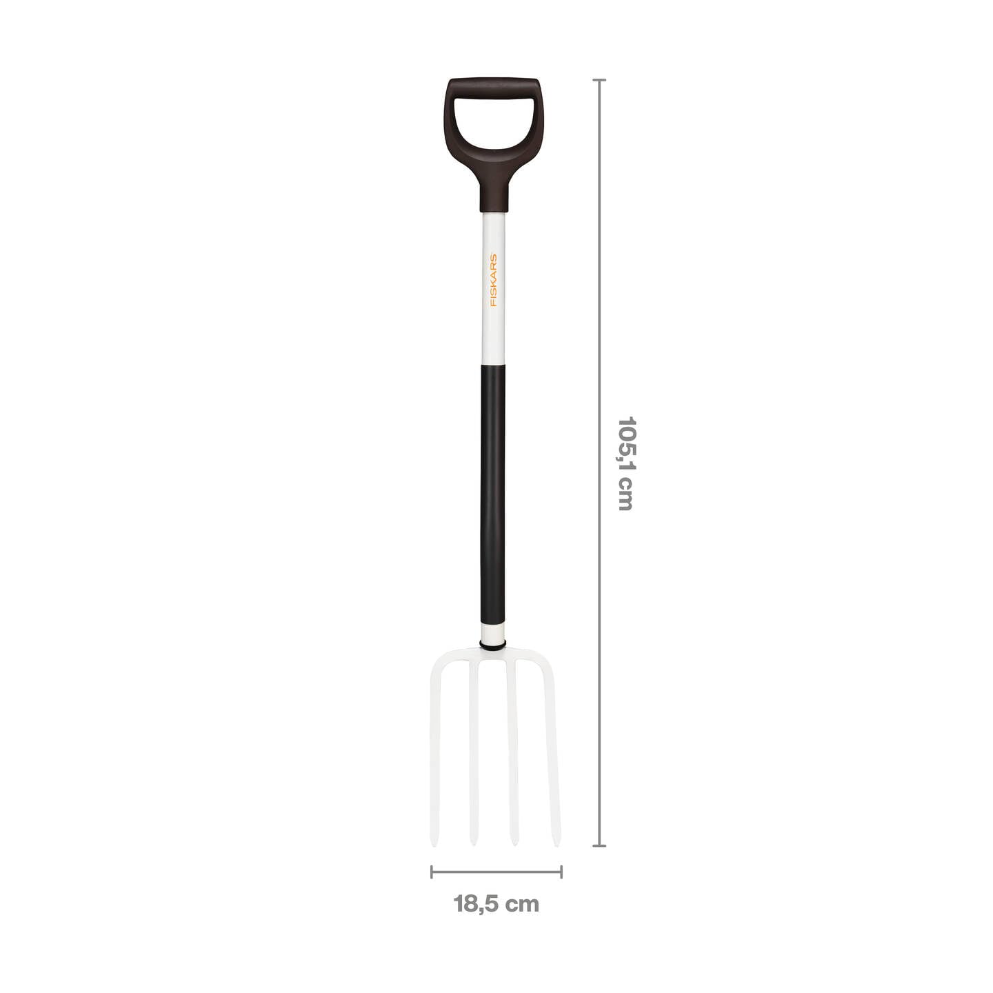 Fiskars Spatengabel für weiche, lockere Böden, Mit 4 Zinken, Länge: 105 cm, Zinken und Stiel aus hochwertigem Stahl, Schwarz/Weiss, White, 1070715
