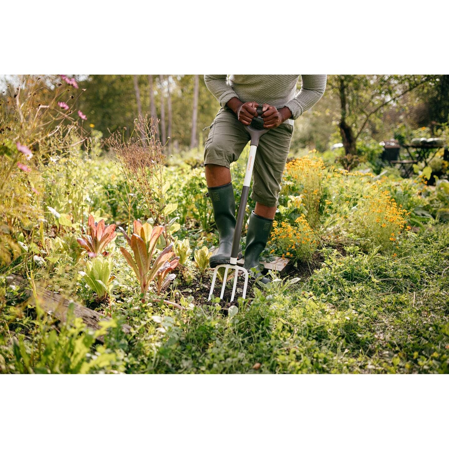 Spatengabel (Gesamtlänge: 105 cm), Kopf aus geschmiedetem Stahl mit 4 Zinken zum Lockern und Wenden der Erde in weichen, lockeren Böden, Auch zum Belüften des Rasens und Herausharken von Steinen oder Unkraut geeignet - Leichtes Graben und Einstechen in den Boden dank 4 scharfer Zinken, Müheloses Arbeiten dank robustem Stahlstiel - Optimale Arbeitshöhe in rückenschonender Haltung zur Entlastung der Muskulatur, Angenehme Position der Hände für alle Handgrössen durch breiteren D-Griff - Hohe Langlebigkeit dank Zinken und Stiel aus hochwertigem Stahl - Lieferumfang: 1x Fiskars White Spatengabel, Länge: 105 cm, Gewicht: 1,69 kg, Material: Stahl, Farbe: Schwarz/Weiss, 1070715