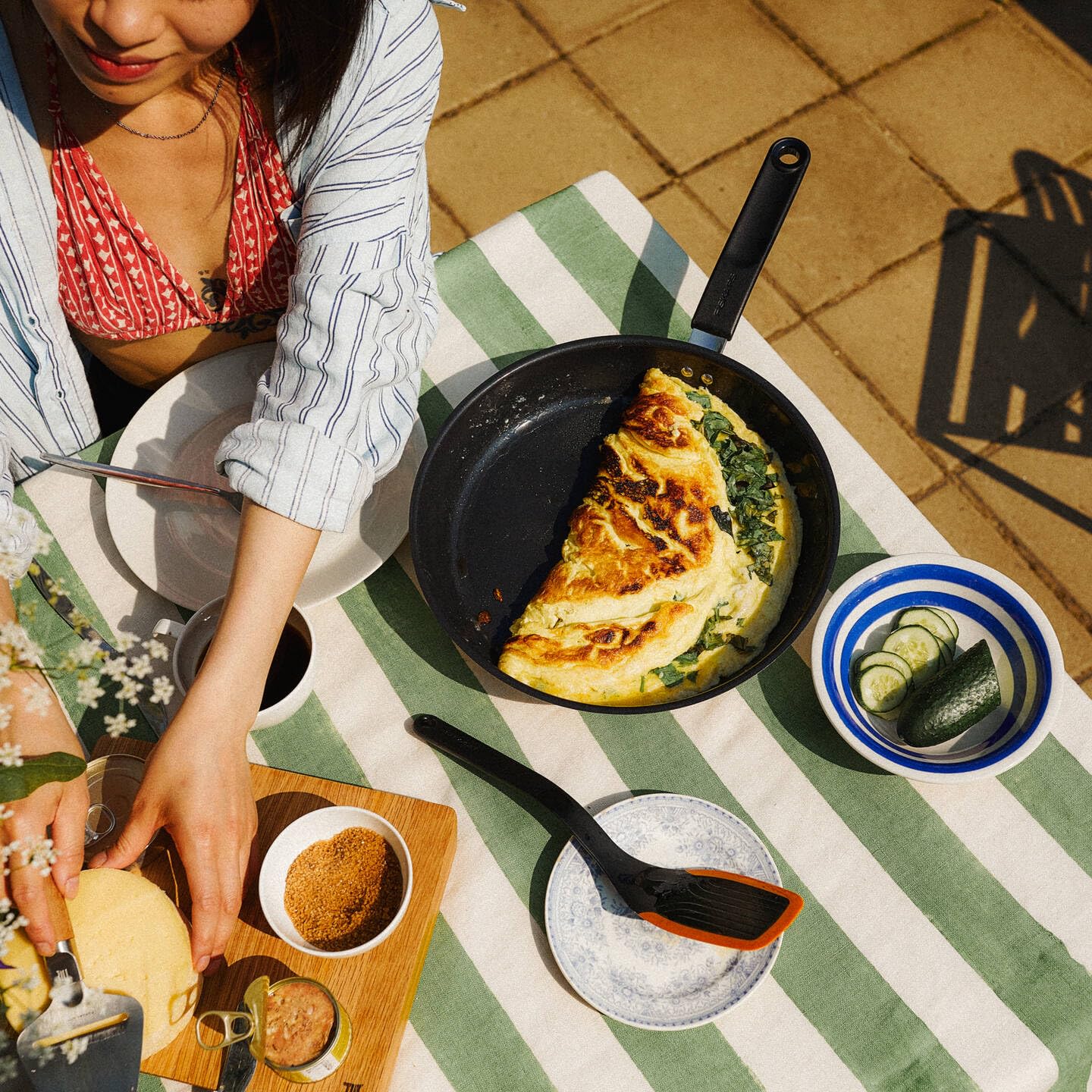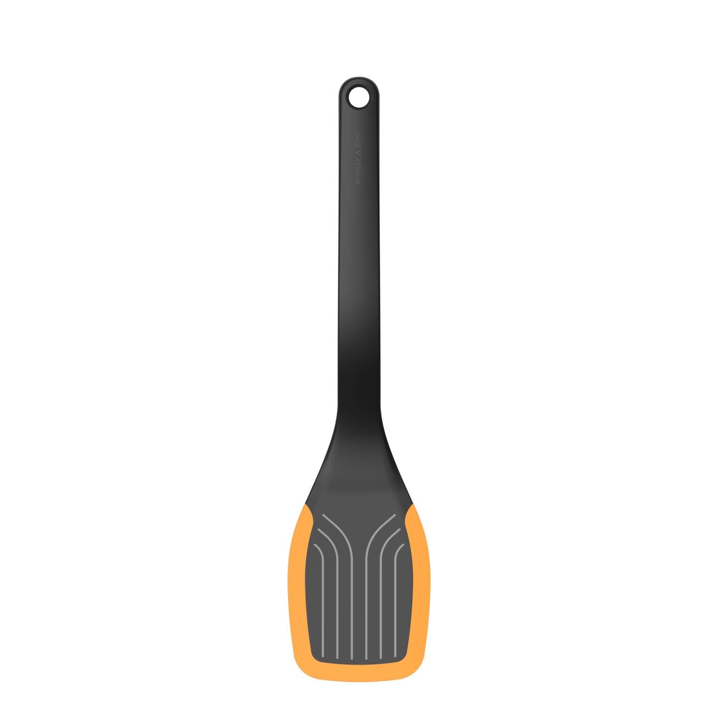 Leichter und handlicher Küchenhelfer beim Braten und Backen zum Wenden Ihrer Speisen in der Pfanne - Kein Zerkratzen von Antihaftbeschichtungen durch Kunststoff, Exzellente Handhabung dank flexibler Silikonkanten - Hohe Sicherheit: Kein Verbrennen der Finger durch Verwendung von Kunststoff, Robuste Ausführung und praktische Grösse für den universellen Einsatz - Praktisches Aufhängeloch am Griff für eine aufgeräumte Küche, Hohe Langlebigkeit, Einfache Reinigung: Spülmaschinengeeignet, Made in Finland - Lieferumfang: 1x Fiskars Pfannenwender, Functional Form, Länge: 29 cm, Gewicht: 40 g, Material: Kunststoff/Silikon, Farbe: Schwarz/Orange, 1027300