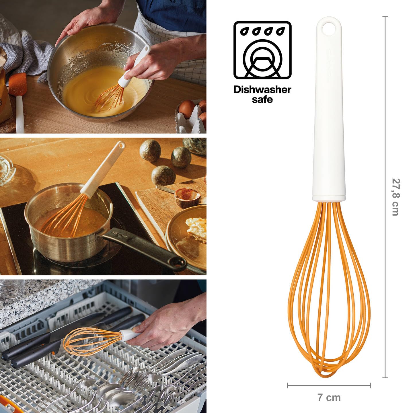 Fiskars Schneebesen mit Silikonbeschichteten Drähten, Länge: 29,7 cm, Kunststoff/Silikon, Orange/Weiss, Functional Form, 1023613
