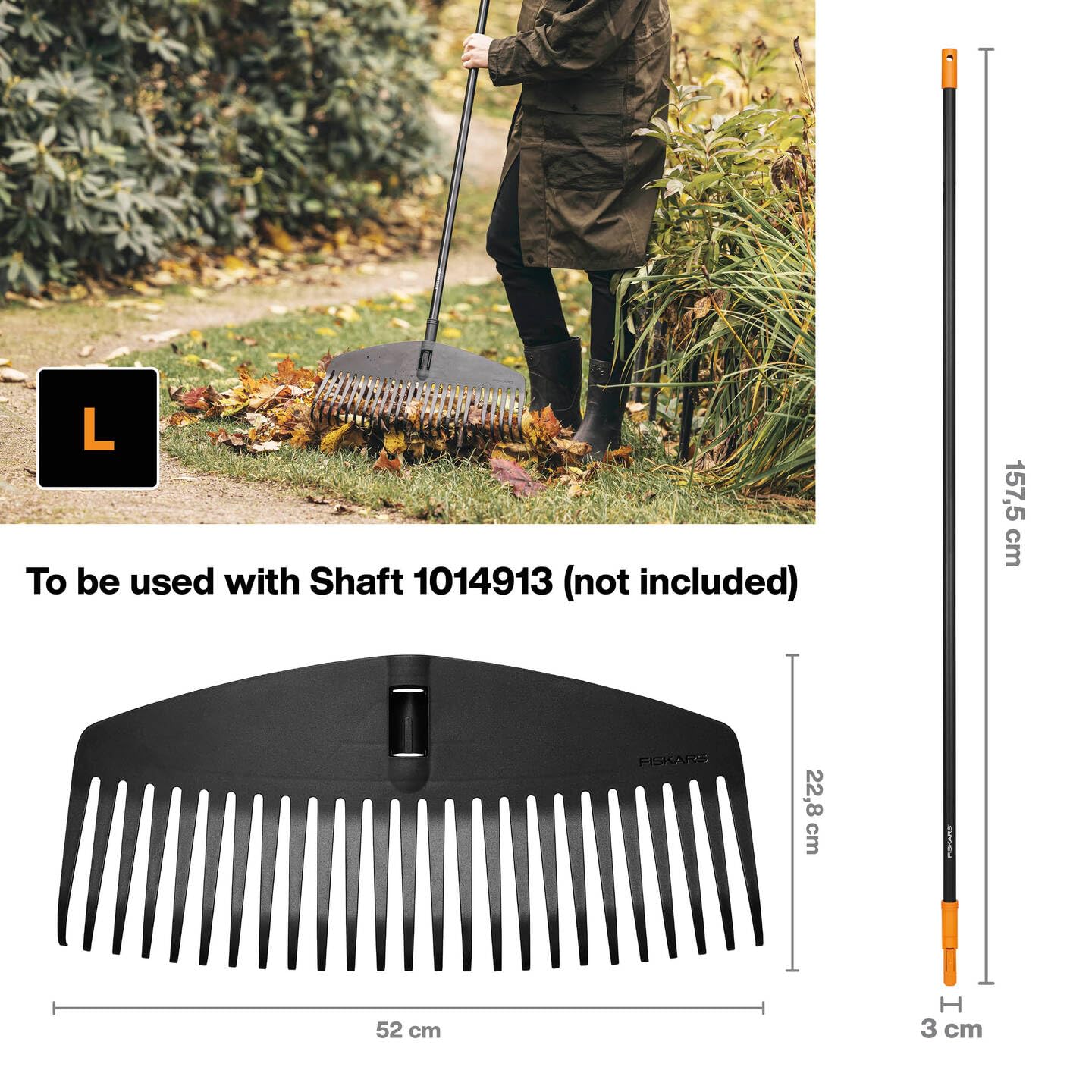 Fiskars Laubbesen-Kopf, 25 Zinken, Verbindbar mit Fiskars Solid Stiel, Breite: 51,1 cm, Kunststoff-Zinken, Schwarz, L, Solid, 1014915