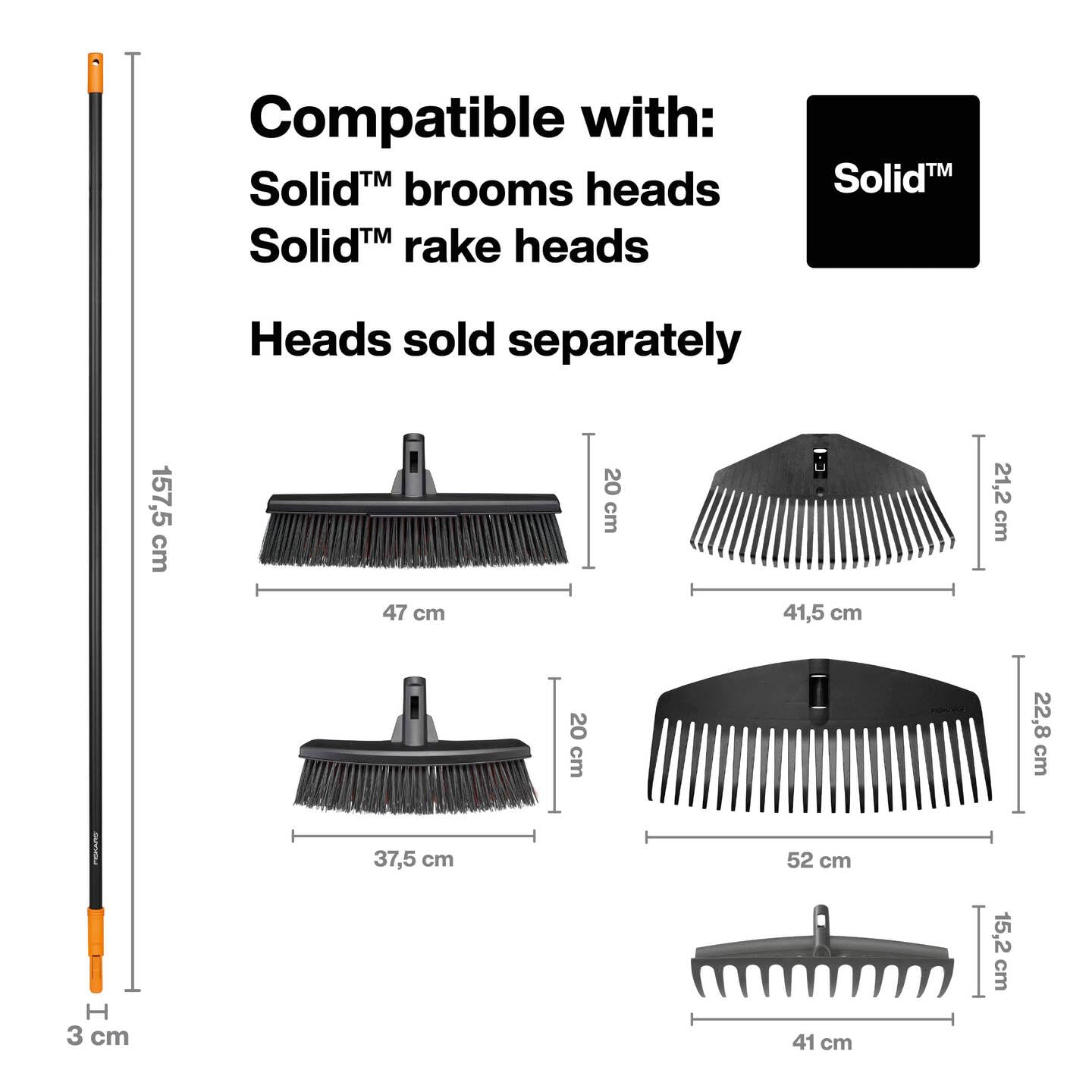 Stiel zum Verbinden mit den separat erhältlichen Fiskars Solid Laubbesen- und Rechen-Köpfen (Art. -Nr. : 1014914, 1014915, 1014917) sowie als Ersatzstiel der Fiskars Laubbesen und Rechen (Art. -Nr. : 1003464 , 1003465 und 1003466), Für grosse Geräte-Vielfalt mit Platzspar-Effekt - Einfaches Arretieren des Stiels mit dem Werkzeug-Kopf, Feste Verbindung zwischen Stiel und Aufsatz für problemloses Arbeiten, Leichte Handhabung und gute Griffigkeit - Leichter, langer Aluminiumstiel für müheloses Arbeiten in aufrechter Körperhaltung zur Entlastung der Schulter- und Rückenmuskulatur, Mit Aufhängeloch zum platzsparenden Verstauen - Hohe Langlebigkeit des Aluminiums, Leichtes Reinigen, Finnisches Design, Nicht kompatibel mit der QuikFit-Serie - Lieferumfang: 1x Solid Stiel, Länge: 157, 5 cm, Gewicht: 306 g, Material: Aluminium, Farbe: Schwarz/Orange, 1014913