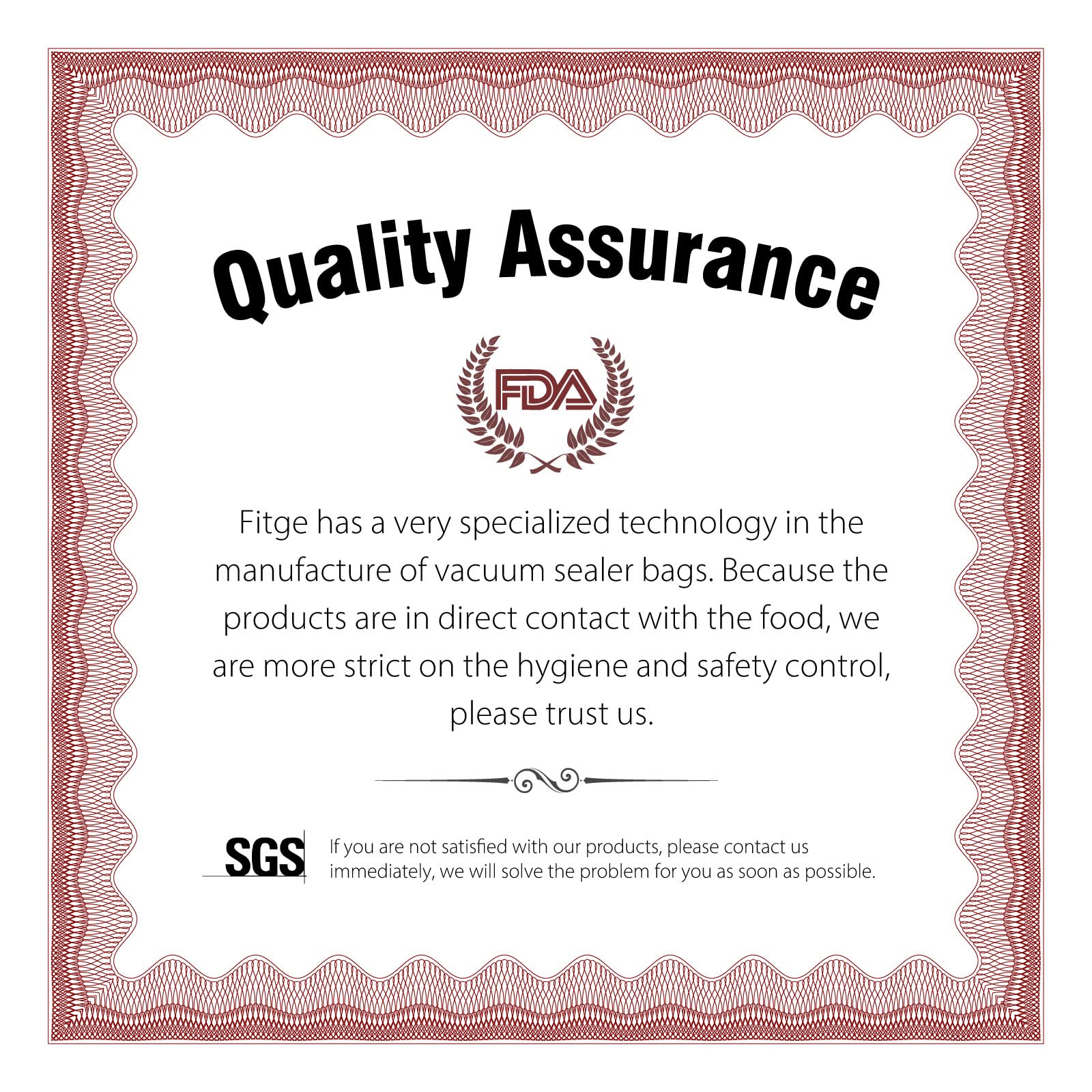 - Qualitätsstandard für Lebensmittel: Fitge besitzt die professionelle Technologie zur Produktion von Vakuumbeuteln, da diese direkt mit Lebensmitteln in Kontakt kommen, wählen wir sorgfältig sichere Rohstoffe und kontrollieren streng die Produktionseinstellungen.