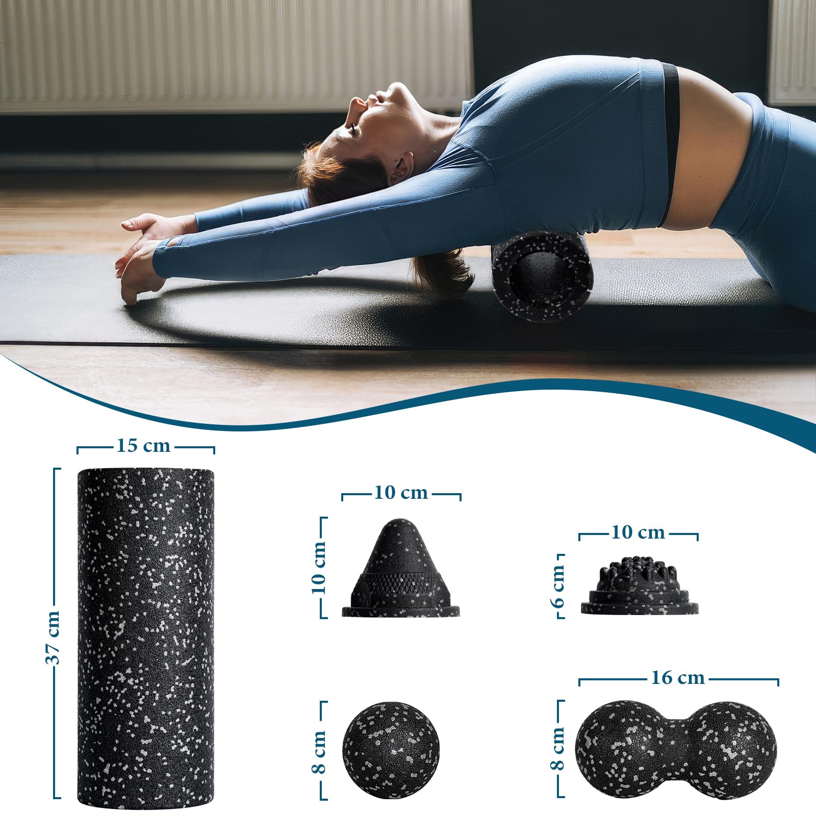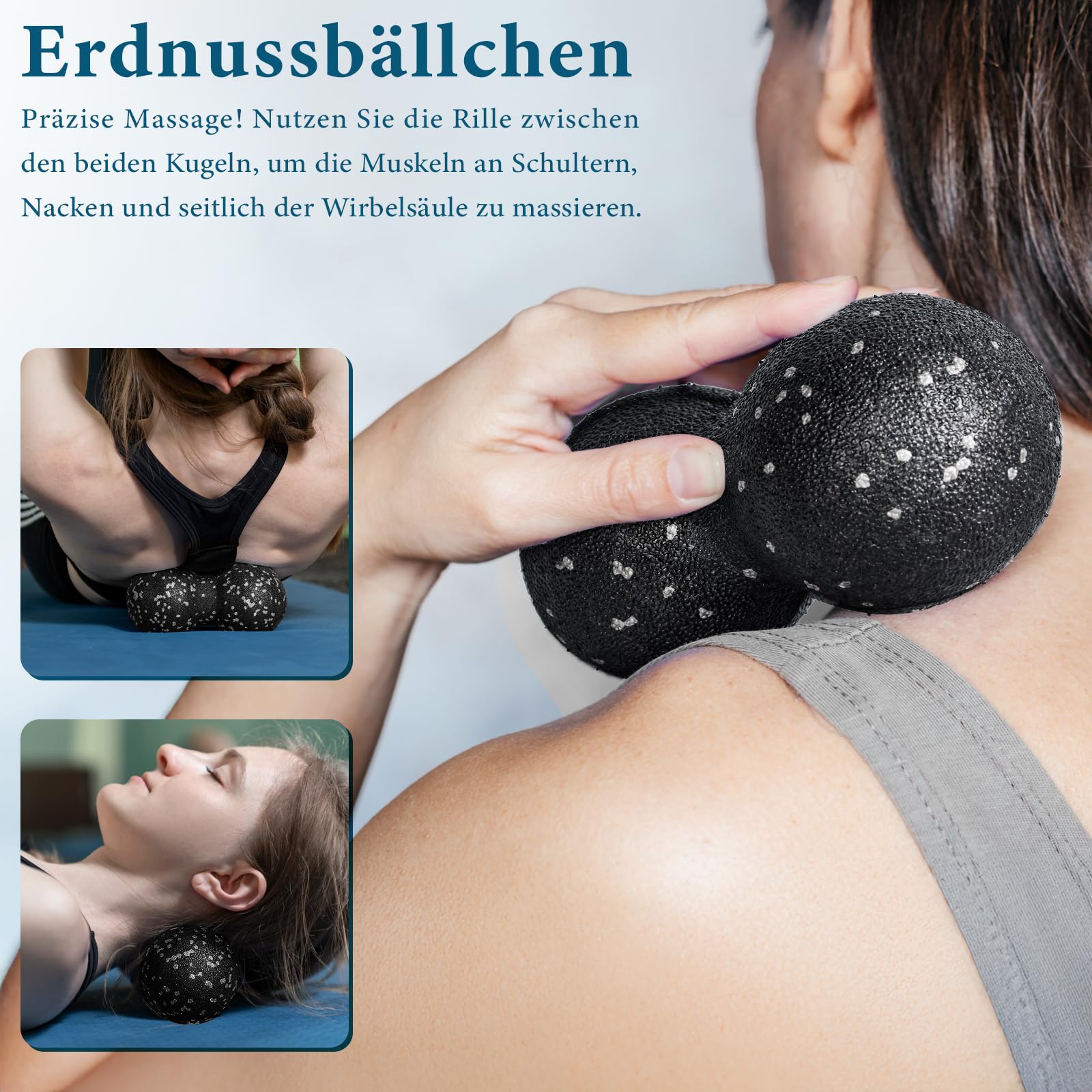 Fitnessrolle Faszienrolle Set 5-T Faszienball Blackroll Foam Roller Faszien Set mit Faszienball Faszienrolle Klein und Duoball Triggerpunkt für Yoga Faszien Training von Muskeln
