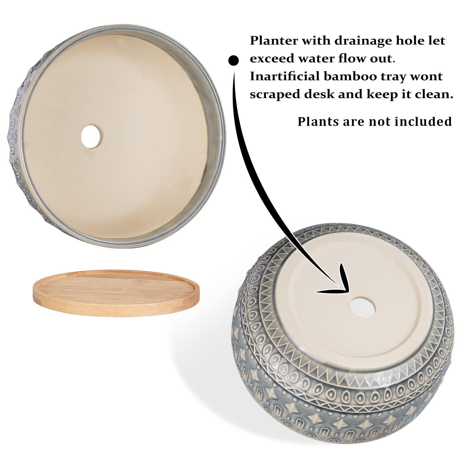 Detaillierte Masse helfen dir, den passenden Pflanztopf auszuwählen. Grösse des Sukkulenten-Pflanztopfs: Der flache Keramiktopf misst 20,3 x 20,3 x 7,6 cm (L x B x H), das Bambustablett misst 16 x 16 x 0,5 cm (L x B x H).