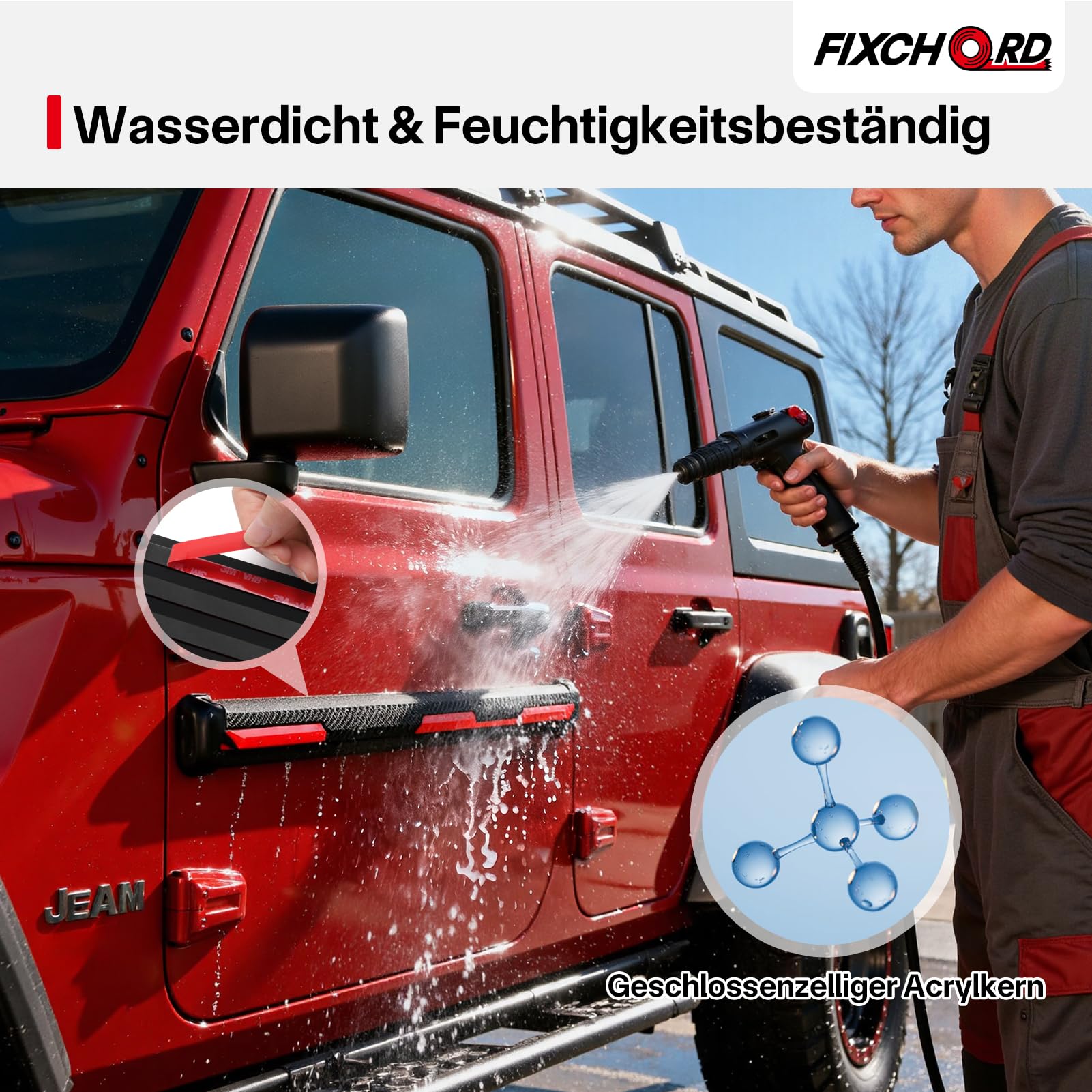 Das doppelseitige Klebeband FIXCHORD verwendet einen Acrylklebstoff, der für seine hervorragende Witterungsbeständigkeit bekannt ist und eine gute Haftung von 150°F Hitze bis -40°F Kälte aufrechterhält, wodurch es für den Einsatz im Innen- und Aussenbereich geeignet ist. Die Struktur dieses doppelseitigen Klebstoffs ist stabil und beim Abreissen bleiben keine Klebstoffreste zurück.