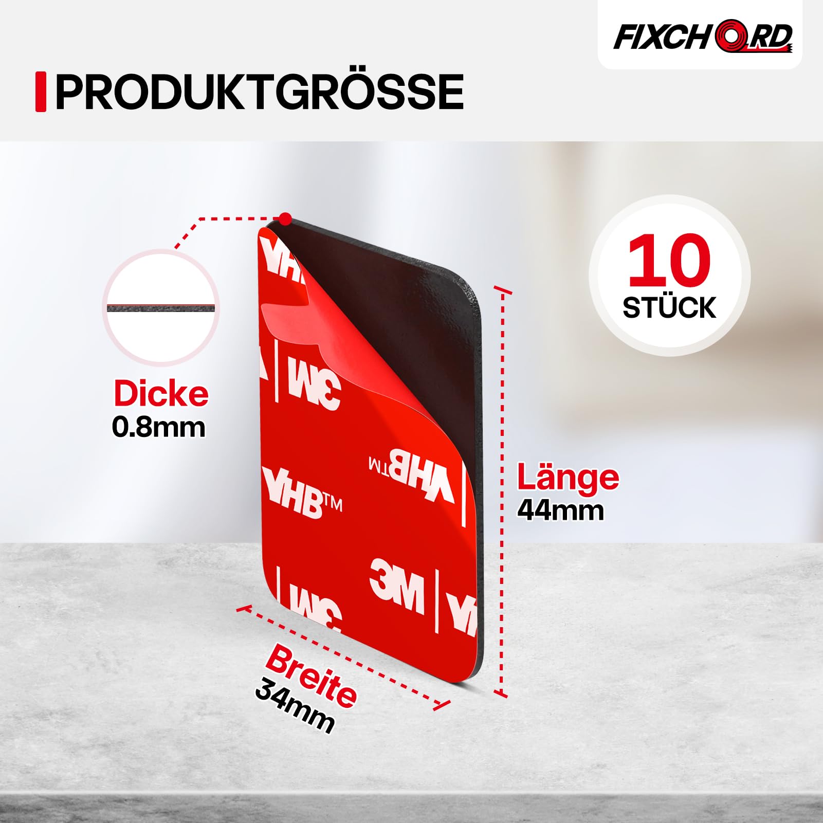 FIXCHORD VHB 5930 Doppelseitiges Klebepads Extra Stark, 10St Doppelseitiges Klebeband, Montageband, wasser & temperaturbeständig für Autos, Häusern und Büros, Action-Kameras 44 * 34mm