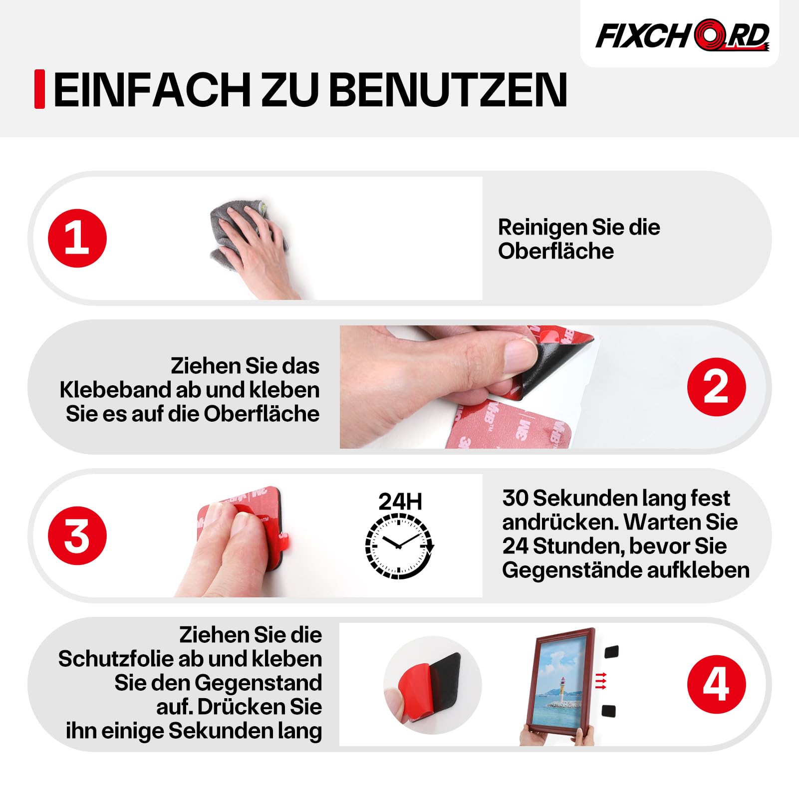 Das doppelseitige Klebeband FIXCHORD macht Ihnen das Leben leichter.