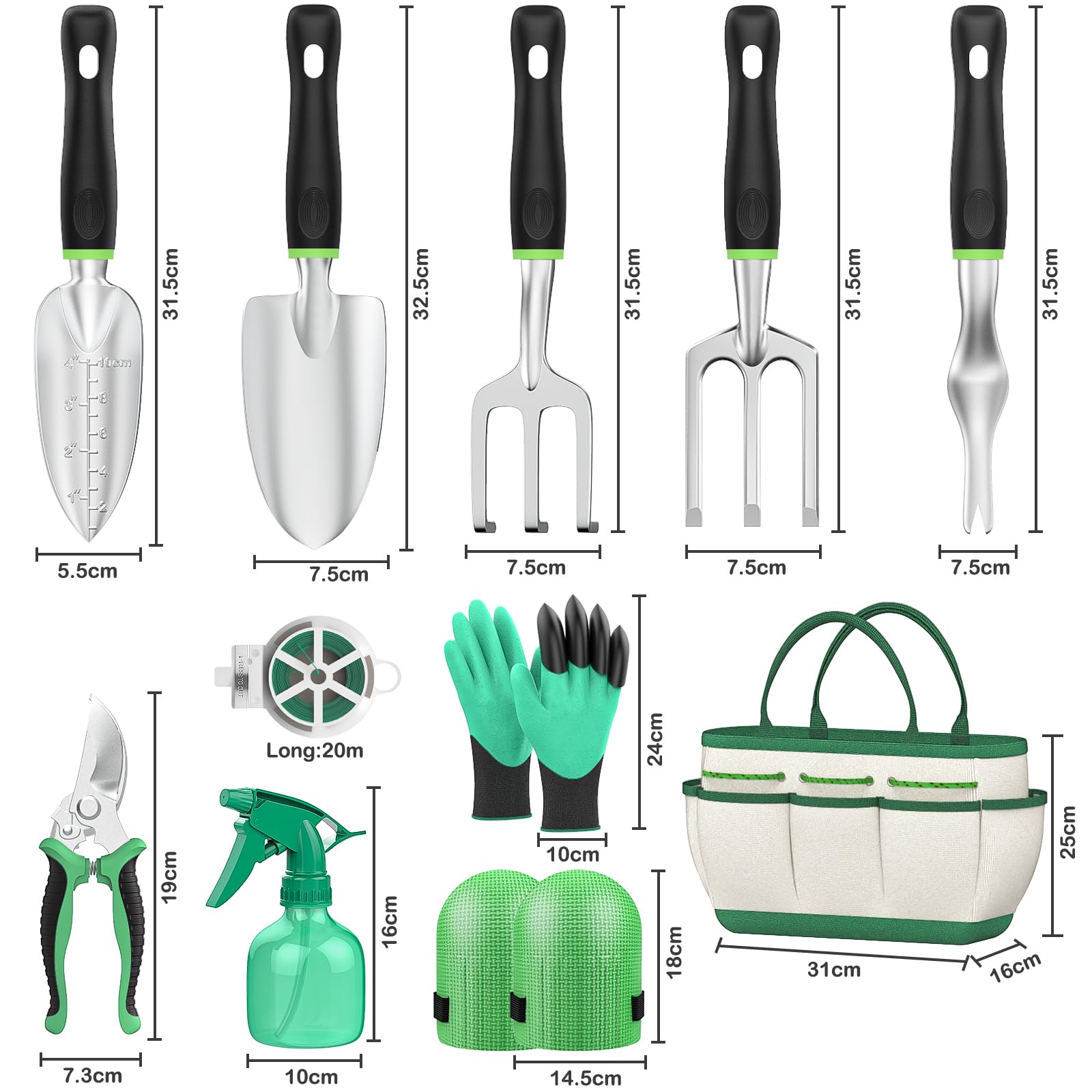 Fixmend Gartenwerkzeug Set, 11 Stück Edelstahl Garten Werkzeug Geschenk-Kit mit Zubehör Werkzeugtasche, Ideale Garten Geschenke für Gartenliebhaber für Frauen für Männer