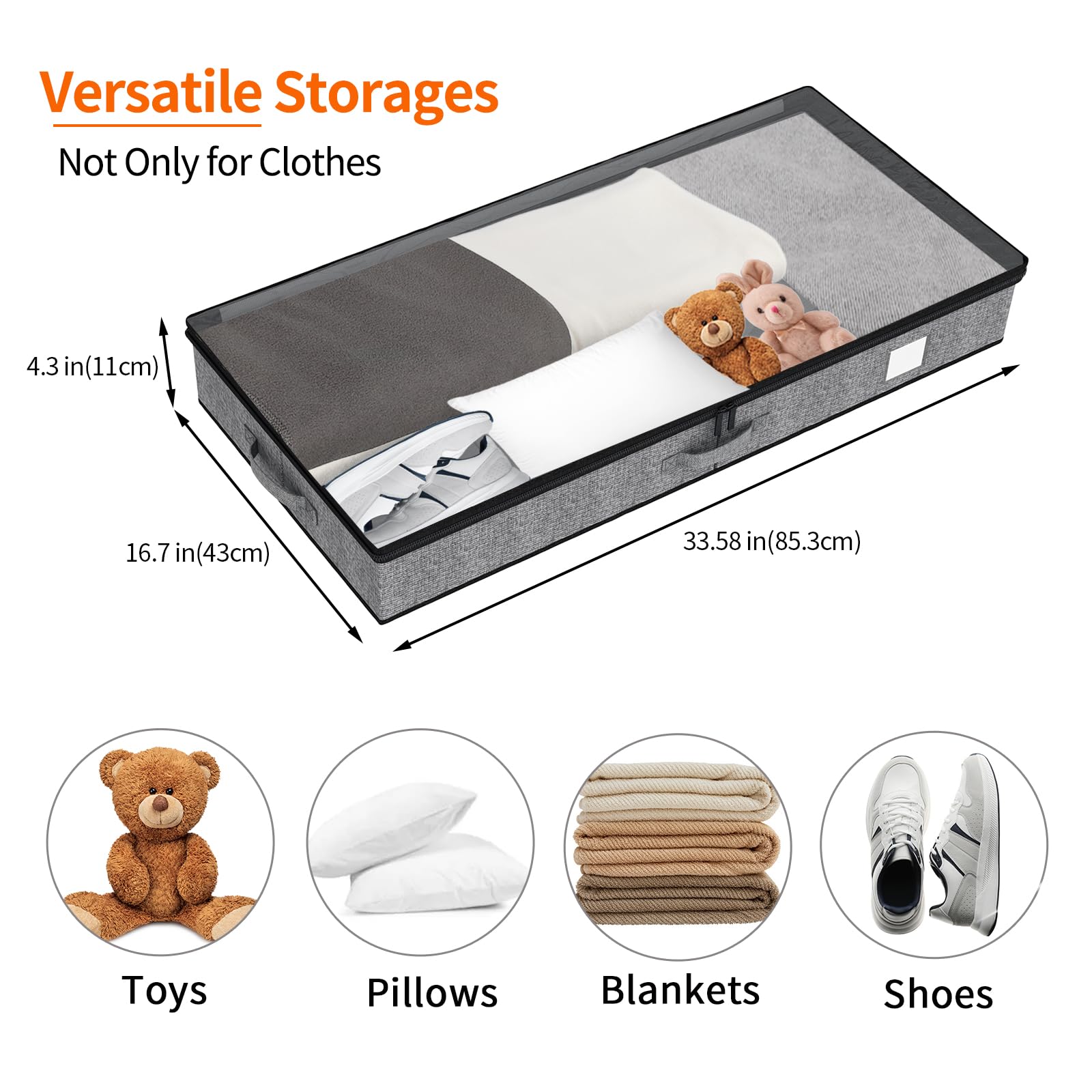 Mehr Platz, weniger Unordnung – Unterbett-Aufbewahrungsbehälter sind so konzipiert, dass Sie Ihren Platz optimal nutzen können. Mit einem flachen Profil und einer stabilen Konstruktion sind sie perfekt für die Aufbewahrung von Decken, Kissen, Kleidung, Schuhen, Büchern und Spielzeug.