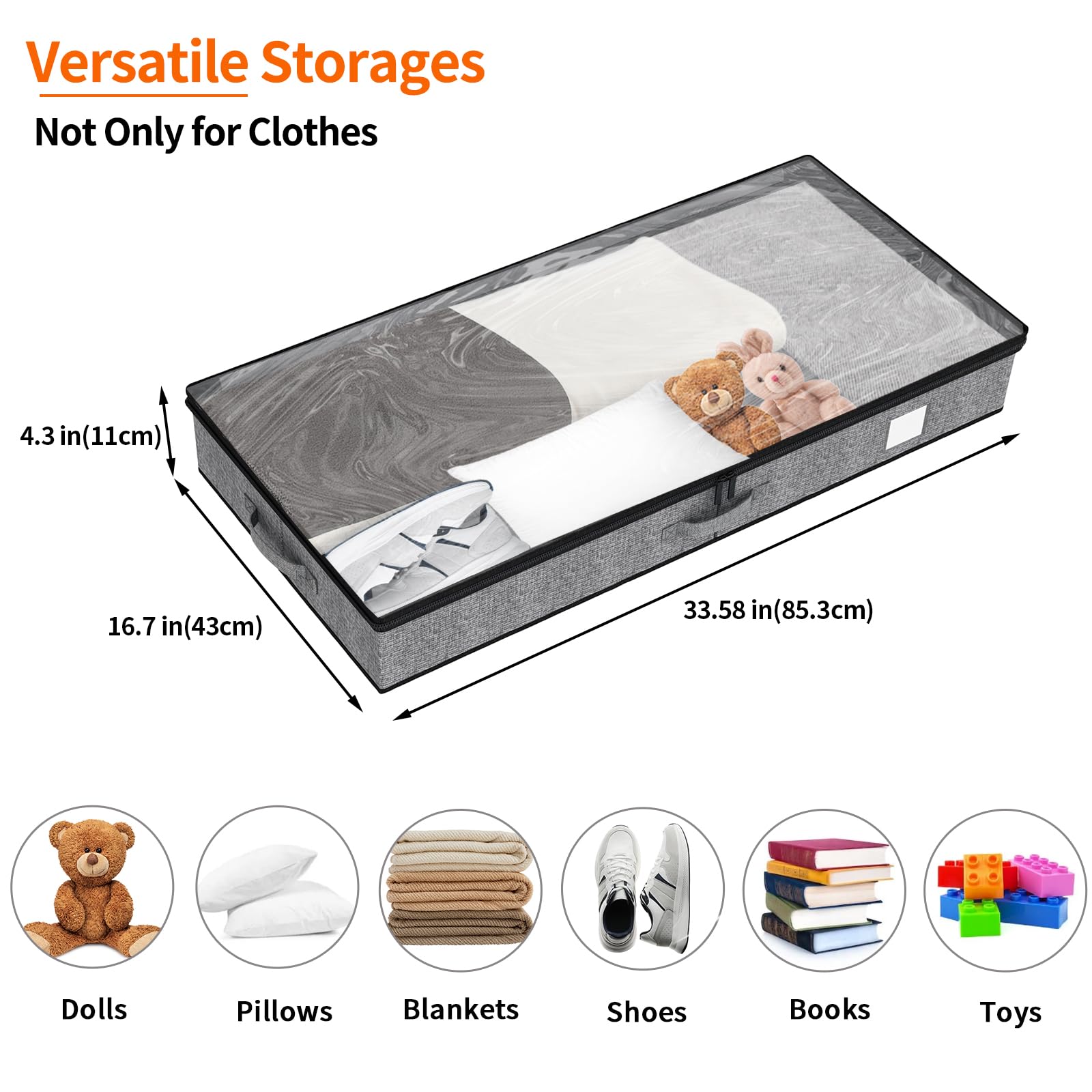 Mehr Platz, weniger Unordnung – Unterbett-Aufbewahrungsbehälter sind so konzipiert, dass Sie Ihren Platz optimal nutzen können. Mit einem flachen Profil und einer stabilen Konstruktion sind sie perfekt für die Aufbewahrung von Decken, Kissen, Kleidung, Schuhen, Büchern und Spielzeug.