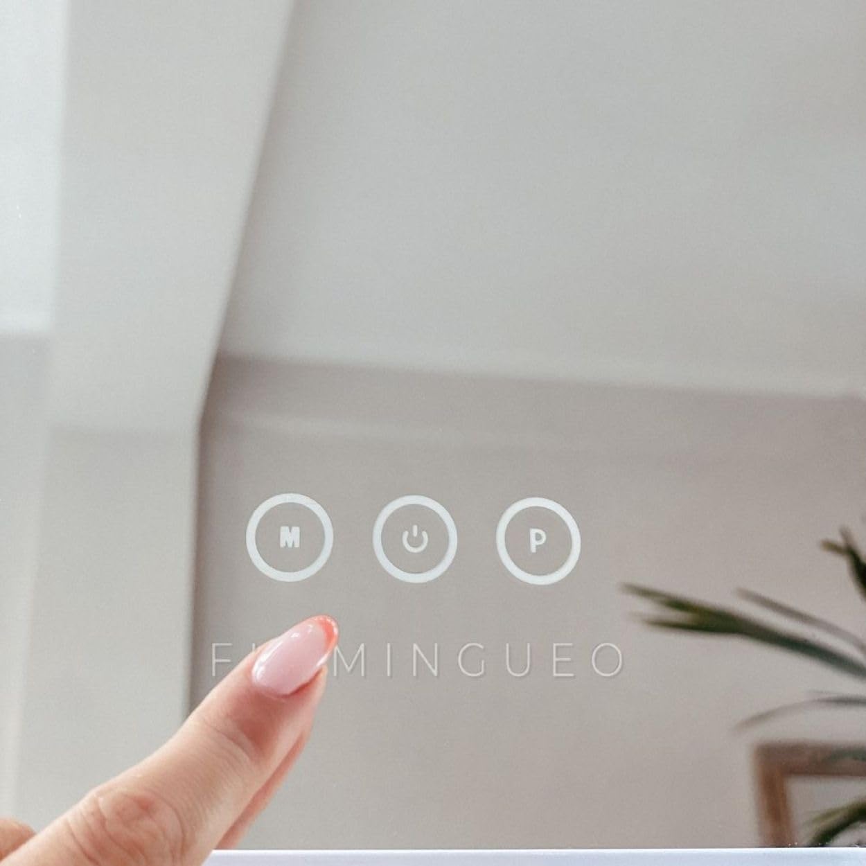 Kim ist ein Schminkspiegel mit Licht, der mit 15 LED-Birnen ausgestattet ist, die Ihnen eine perfekte und gleichmässige Beleuchtung für Ihre Schmink- und Schönheitsrituale des Augenblicks geben werden. Der Schminkspiegel hat ein komfortables, nützliches und minimalistisches Design. Sie können drei Lichtmodi für jeden Moment wählen, von einem kühlen weissen Licht bis zu einem wärmeren Ton. Der Kosmetikspiegel mit Licht für Ihre Schminkkommode verfügt ausserdem über eine Taste, mit der Sie die Lichtintensität nach Ihren Wünschen einstellen können. Auf der Vorderseite des Spiegels befinden sich drei Arten von Bedientasten und ein Touch-Design. Eine Ein/Aus-Taste, die M-Taste zur Auswahl der Farbe und des Farbtons des Lichts und die P-Taste, mit der Sie die Helligkeit und Intensität des Lichts leicht und einfach durch Drücken mit dem Finger einstellen können. Der grosse Spiegel misst 58 x 46 x 12 cm und wird an das Stromnetz angeschlossen. Unser Hollywood-Spiegel verfügt über eine USB-Buchse an der Seite, an die Sie Ihr Mobiltelefon oder ein anderes Gerät Ihrer Wahl anschliessen können. Ausserdem verfügt dieser Schminkspiegel über eine 5-fache Vergrösserung für die Bereiche, in denen Sie sich schminken möchten und die Sie genauer und detaillierter sehen möchten. Der Sockel des Schminkspiegels ist rechteckig und abnehmbar und hat auf der Rückseite Löcher, damit Sie den Spiegel an die Wand hängen können. Das Schraubenset ist im Lieferumfang enthalten. Der Kim-Spiegel ist in 5 Farben erhältlich: weiss, schwarz, rosegold, gold und rosa.