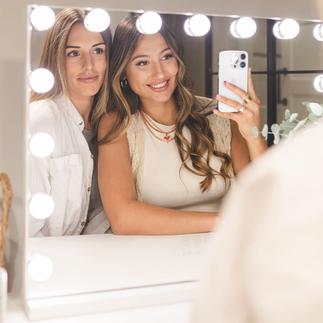 Flamingueo Schminkspiegel Mit Beleuchtung - Kosmetikspiegel 15 LED, 3 Modi, Hollywood Spiegel, Spiegel Mit Licht (Weiss)