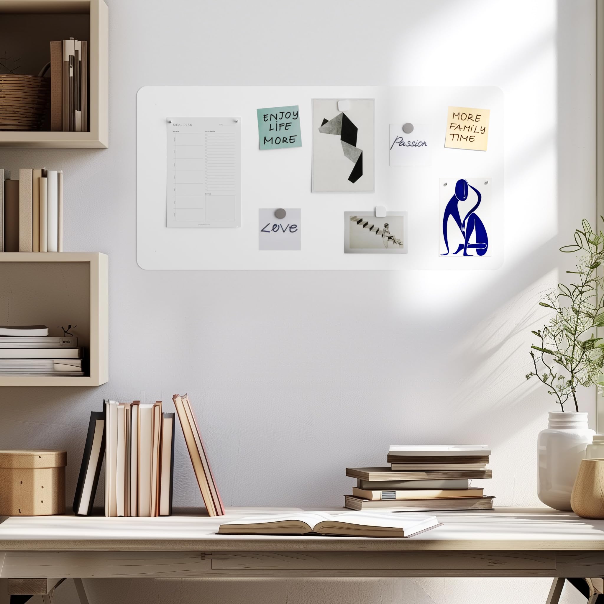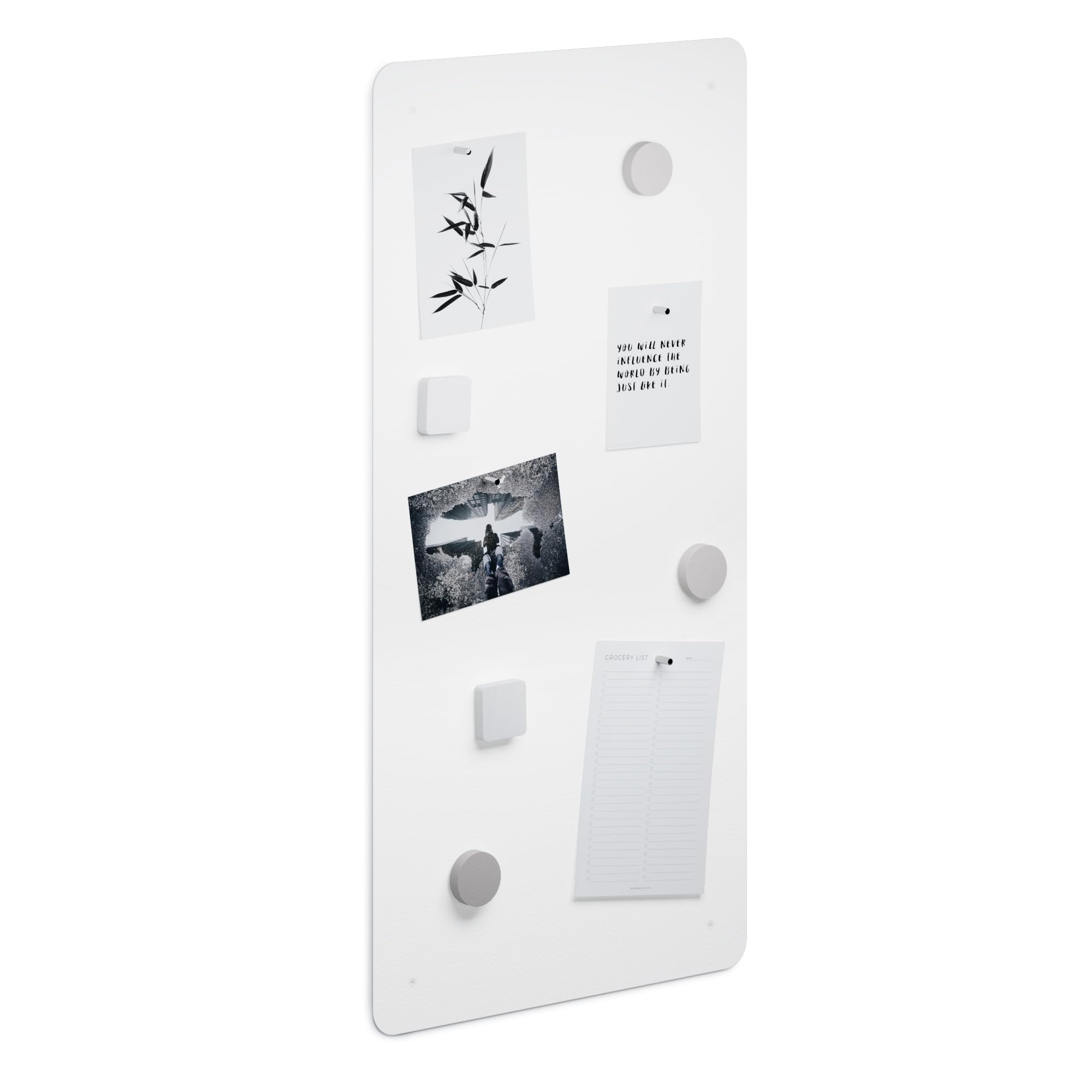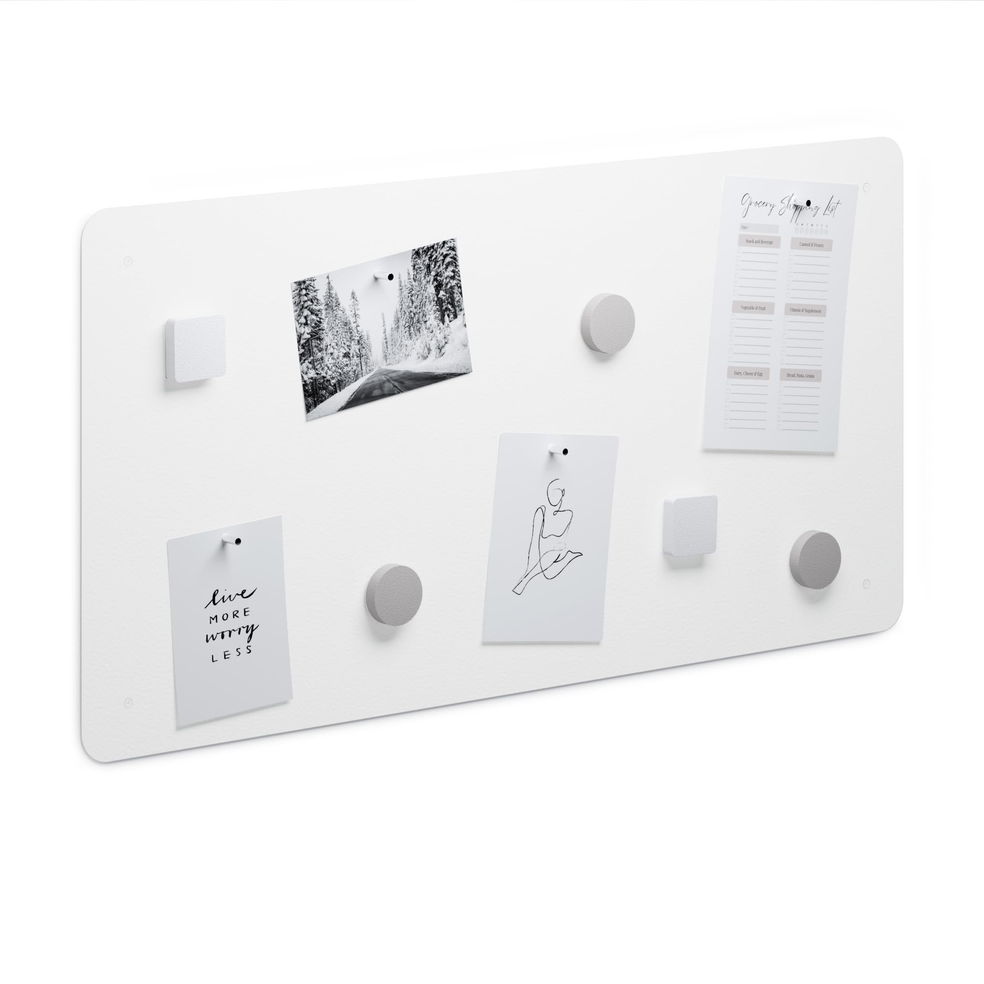 Eine Magnettafel ist eine sehr praktische Lösung zum Aufbewahren von Notizen, Fotos, Zeichnungen oder Magneten aus dem Urlaub. Das Board ist in 3 Versionen und 2 Universalfarben erhältlich. Es besteht aus pulverbeschichtetem Stahlblech.