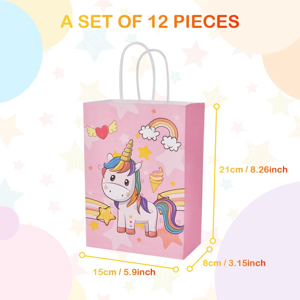 Flintronic 12 Stück Papiertüten, Geschenktüten Kindergeburtstage, Einhorn Papiertüten Papier Tüten, 21cm * 15cm * 8cm Candy Tüten, Verpacken von Geschenken, Hochzeit, Party