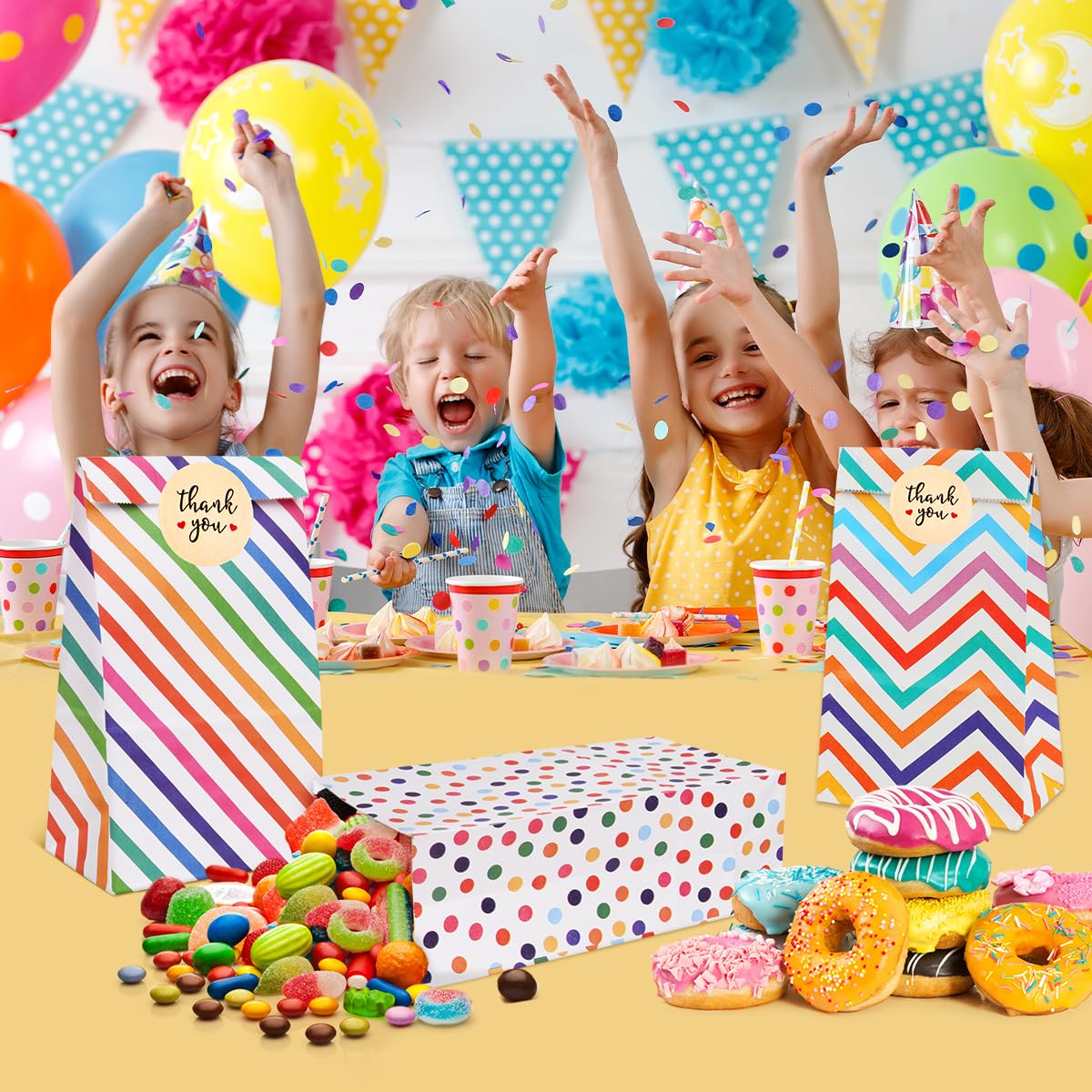 Flintronic 25 Stück Papiertüten, Geschenktüten Kindergeburtstage mit Aufkleber, 18 cm * 9 cm * 5,58 cm Candy Tüten zum Mitgebsel Kindergeburtstag Mädchen, Giveaways, Hochzeit