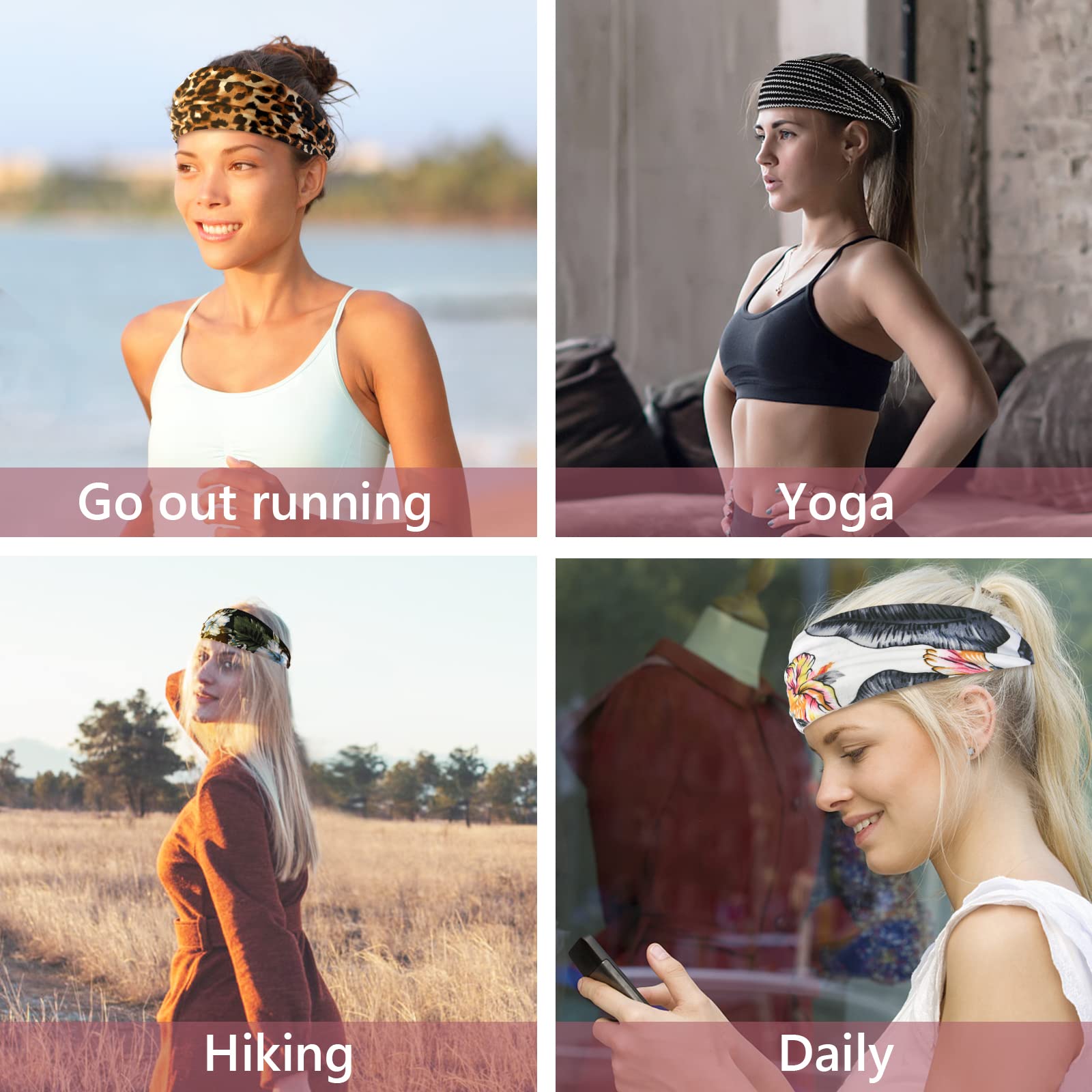 Flintronic 4/6 PCS Sports Damen Stirnband, Baumwollstretch Schweissband Mischfarben, Wicking Stretchy Stirnband für Frauen Sport/Yoga/Laufen/Fitness