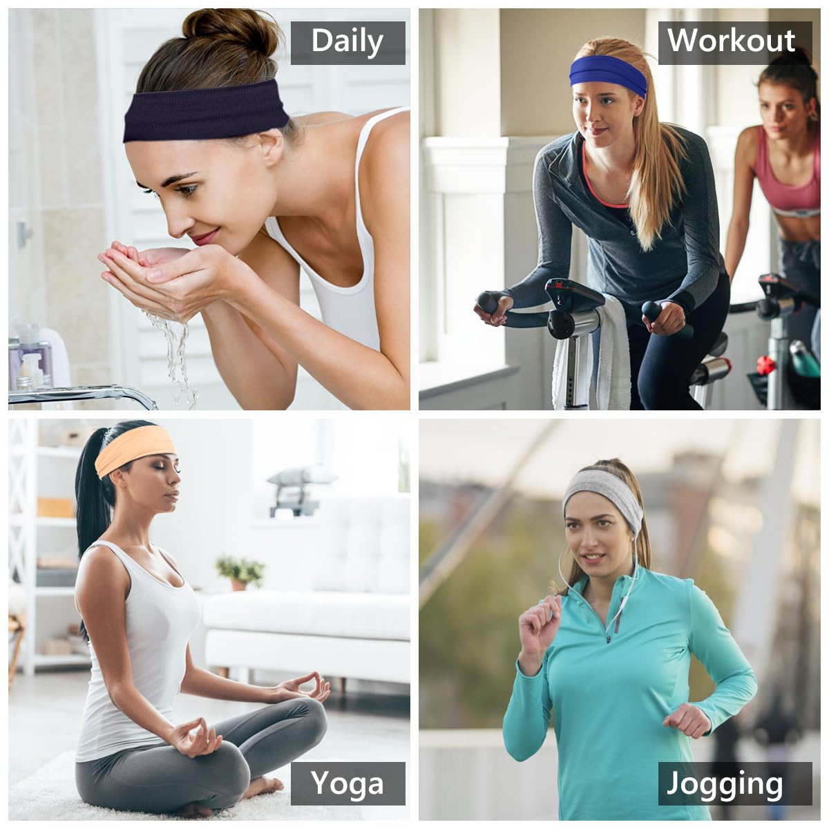 Flintronic Sports Damen Stirnband, Baumwollstretch Schweissband Mischfarben, Wicking Stretchy Stirnband für Frauen Sport/Yoga/Laufen/FitnessFEATURE:1. Diese Stirnbänder haben eine starke Fähigkeit, Schweiss zu absorbieren und können die durch Schwitzen verursachten Beschwerden bei Yoga, Ballett, Laufen, Laufen, Fussball, Basketball und anderen Sportarten vermeiden.2. Nicht nur für Sport geeignet, sondern auch für Gesicht oder Make-up.VORTEIL:● Hohe Beständigkeit der strukturellen Leistung über die Zeit● Pflegeleicht-leicht zu waschen, behält Form, Elastizität und Farbe● Gutes Feuchtigkeitsmanagement und feuchtigkeitstransportierende Leistung● Gute Luftdurchlässigkeit● Gute Stoffstabilität● Dauerhafte FeuchtigkeitsmanagementleistungSPEZIFIKATION:Material: Polyester-BaumwolleFarbe: GemischtePackliste:Stirnbänder – 6 StückHINWEIS:1.Aufgrund der manuellen Messung kann ein bestimmter Grössenfehler auftreten;2.Aufgrund der Aufnahmeumgebung kann es zu einer gewissen chromatischen Aberration kommen;