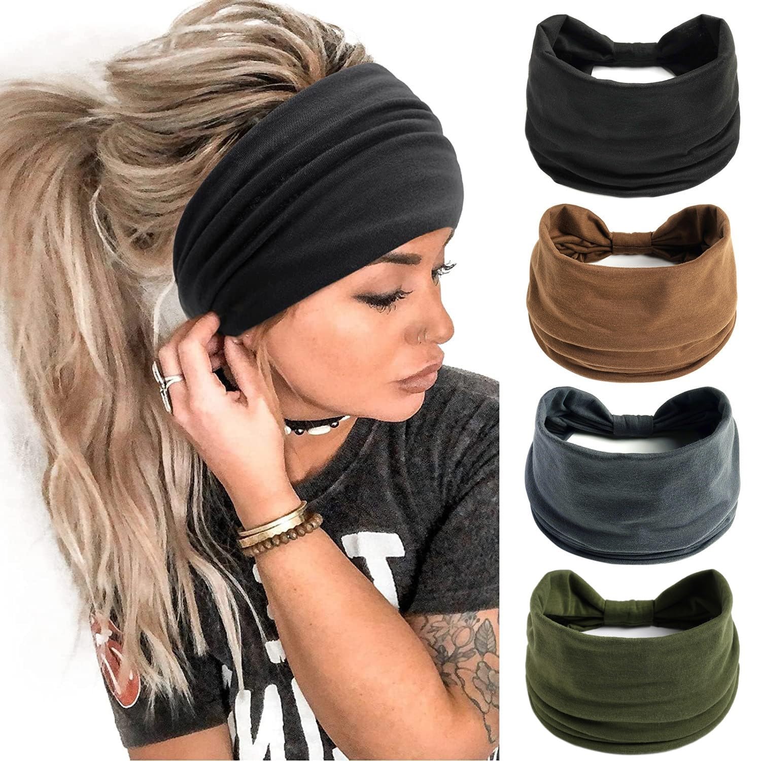 Flintronic 4/6 PCS Sports Damen Stirnband, Baumwollstretch Schweissband Mischfarben, Wicking Stretchy Stirnband für Frauen Sport/Yoga/Laufen/Fitness