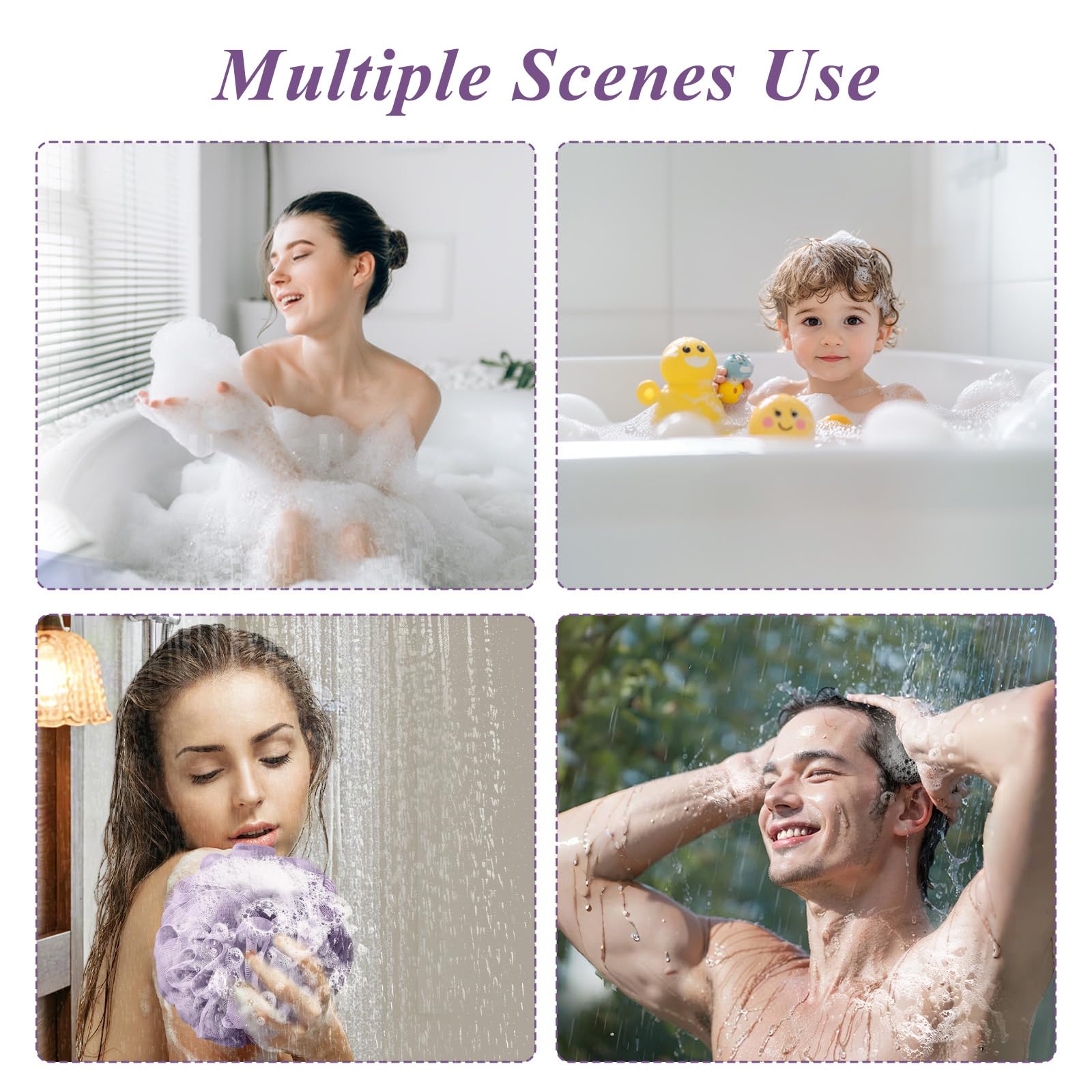 • Vielseitige Farboptionen: Der Badeschwamm ist in Lila, Hellgrün, Grau und Schwarz erhältlich, sodass Sie die Farbe wählen können, die am besten zu Ihrem Badezimmer passt.