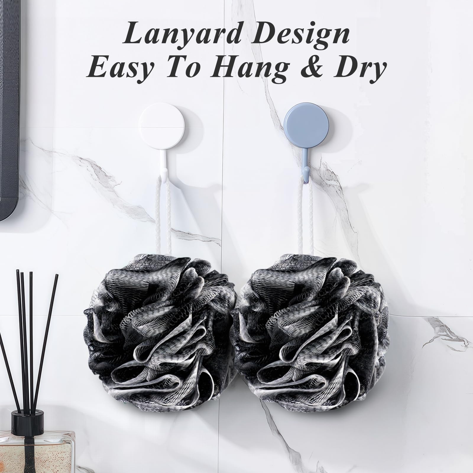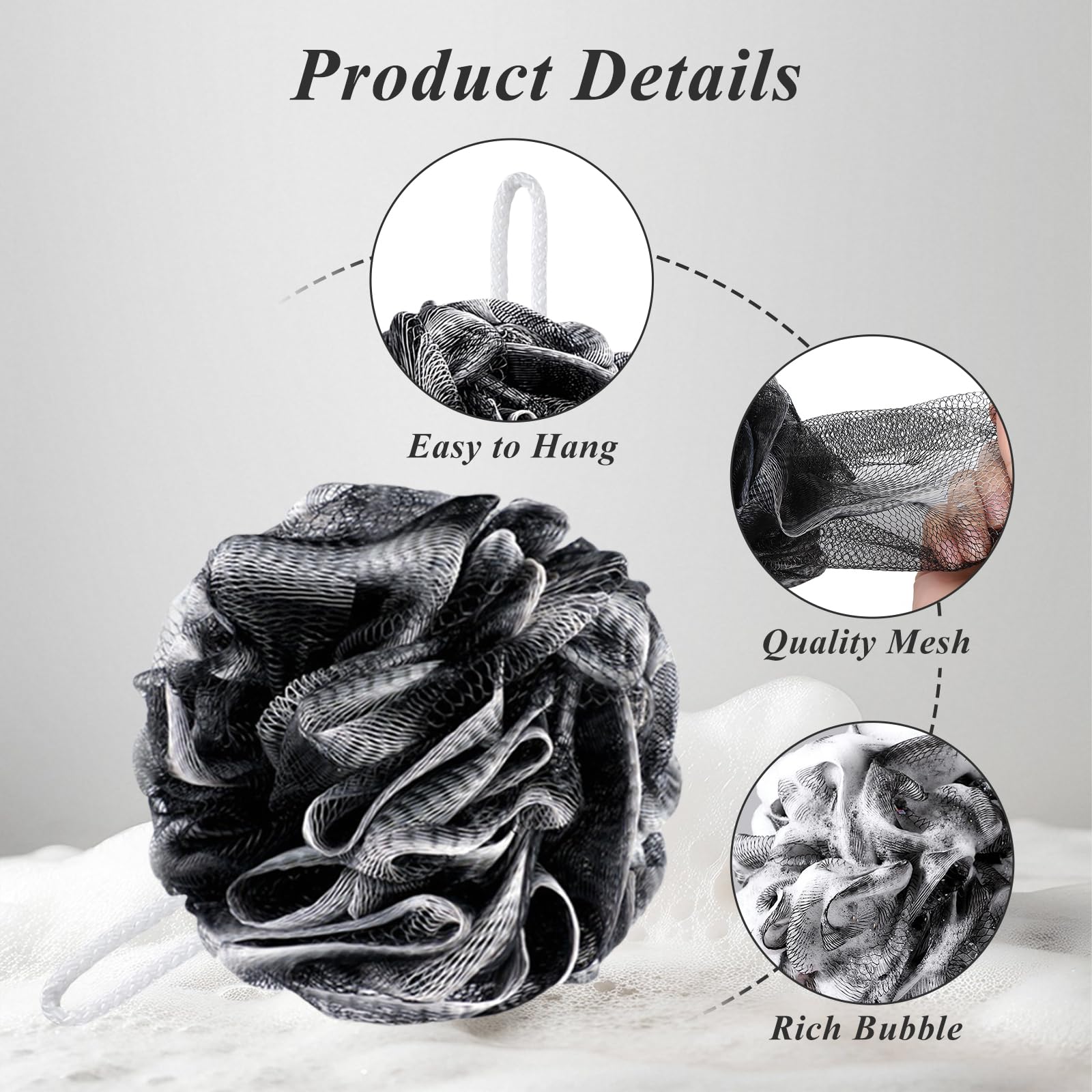 flintronic 4 Stück Badeschwamm Set – 80g Dusch-Luffa-Kugeln, Schäumender Duschschwamm für Körperpeeling, Extra Gross, Schwarz, Langlebig, Weich