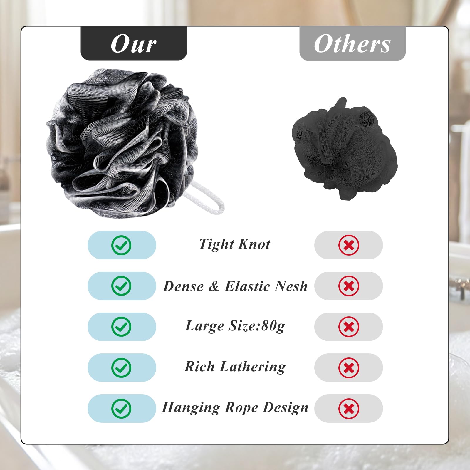 Doppellagiges, dichtes Netz: Erzeugt eine reiche Schaumbildung und sorgt für eine gründliche Peeling-Wirkung, die abgestorbene Hautzellen entfernt und Ihre Haut glatt und frisch hinterlässt.