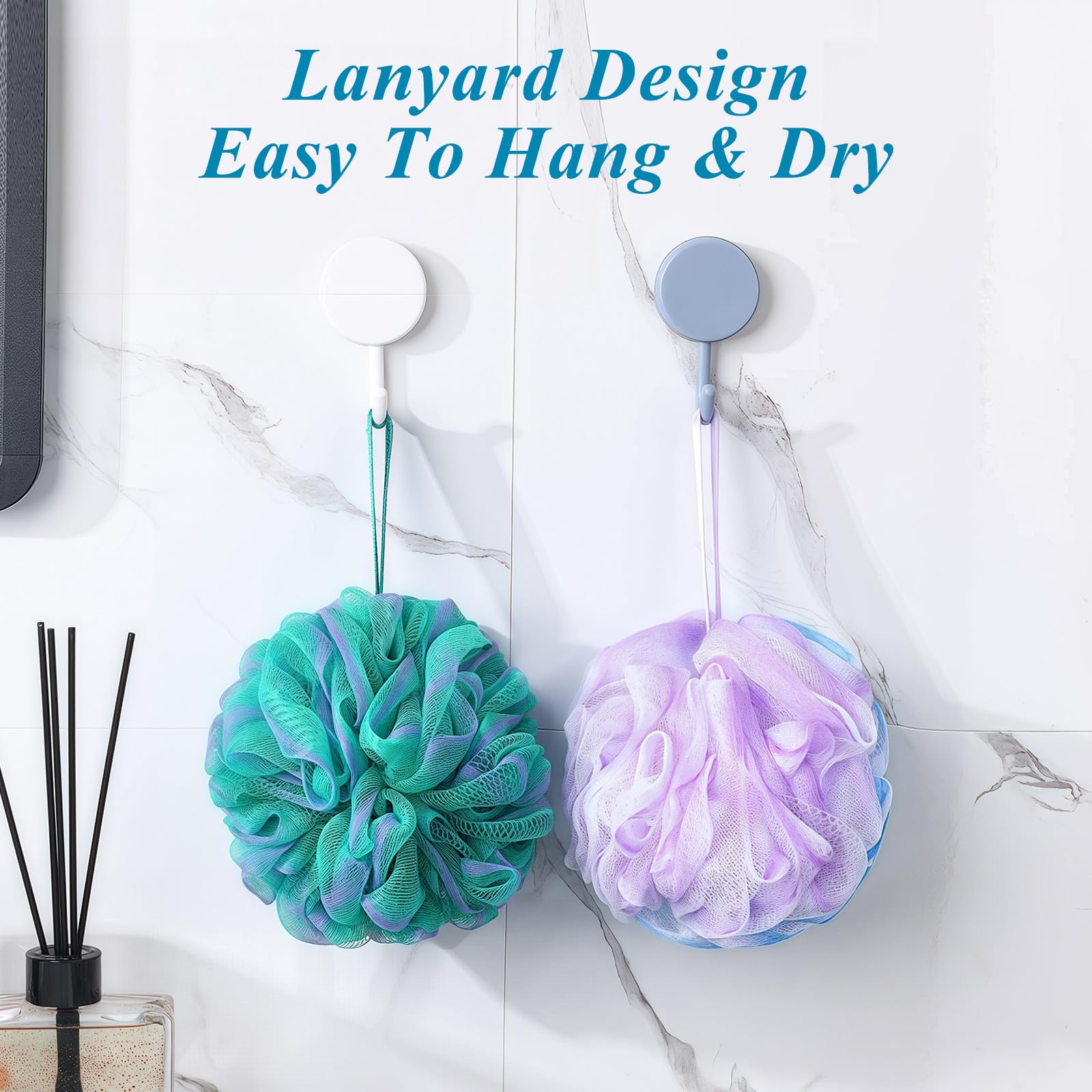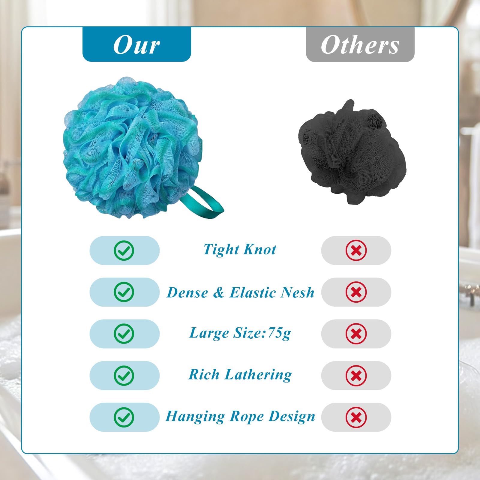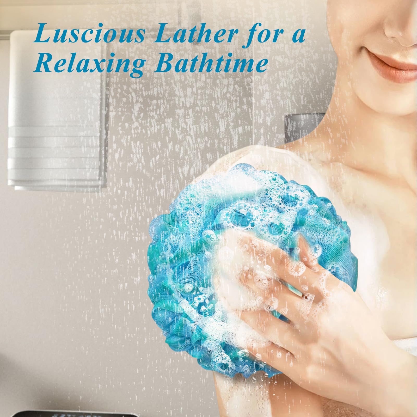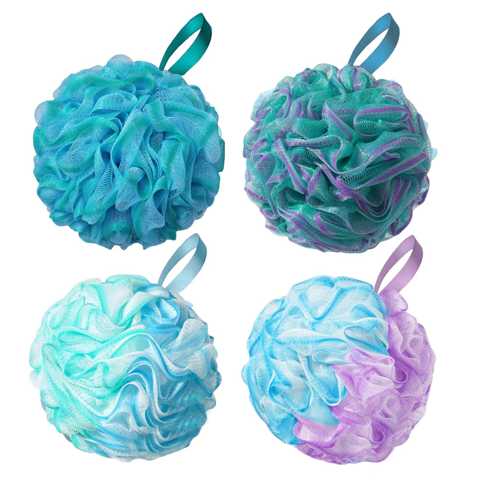 flintronic 4 Stück Badeschwamm Set – 75g Dusch-Luffa-Kugeln, Schäumender Duschschwamm für Körperpeeling, Extra Gross, Blau, Langlebig, Weich