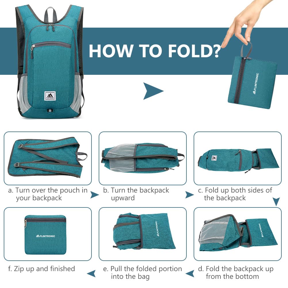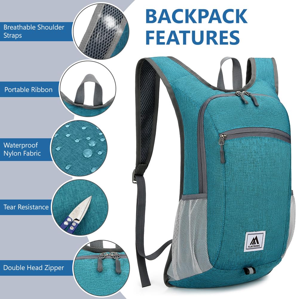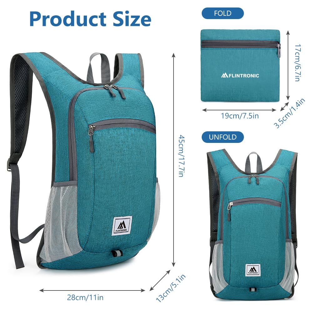 flintronic Faltbarer Rucksack, 16L Kleiner Wanderrucksack, Ultraleicht Wanderrucksack, Wasserfest Reiserucksack, Packbare Backpack, Damen Herren Daypack, für Camping Klettern/Outdoor Wandern