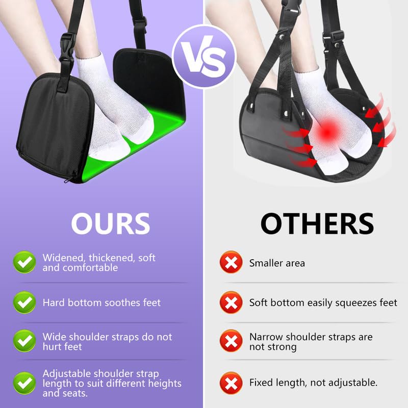 Flintronic Flugzeug Fussstütze Fusshängematte, Flugzeugfussstütze aus Premium-Schaumstoff, Tragbare Verstellbare Flugzeug Beinauflage, Keine Zusammenstossende Fussstütze, für Auto, Zug, Büro, Lange Flüge