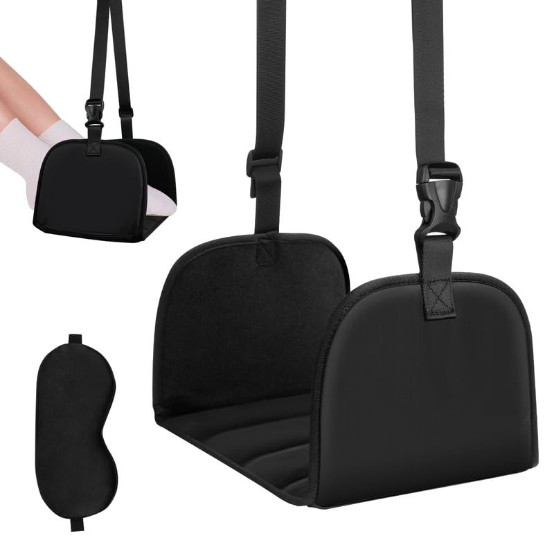 Flintronic Flugzeug Fussstütze Fusshängematte, Flugzeugfussstütze aus Premium-Schaumstoff, Tragbare Verstellbare Flugzeug Beinauflage, Keine Zusammenstossende Fussstütze, für Auto, Zug, Büro, Lange Flüge