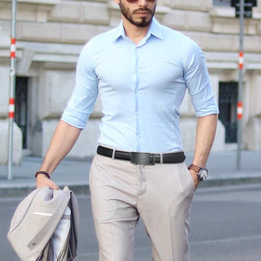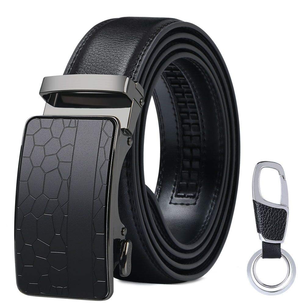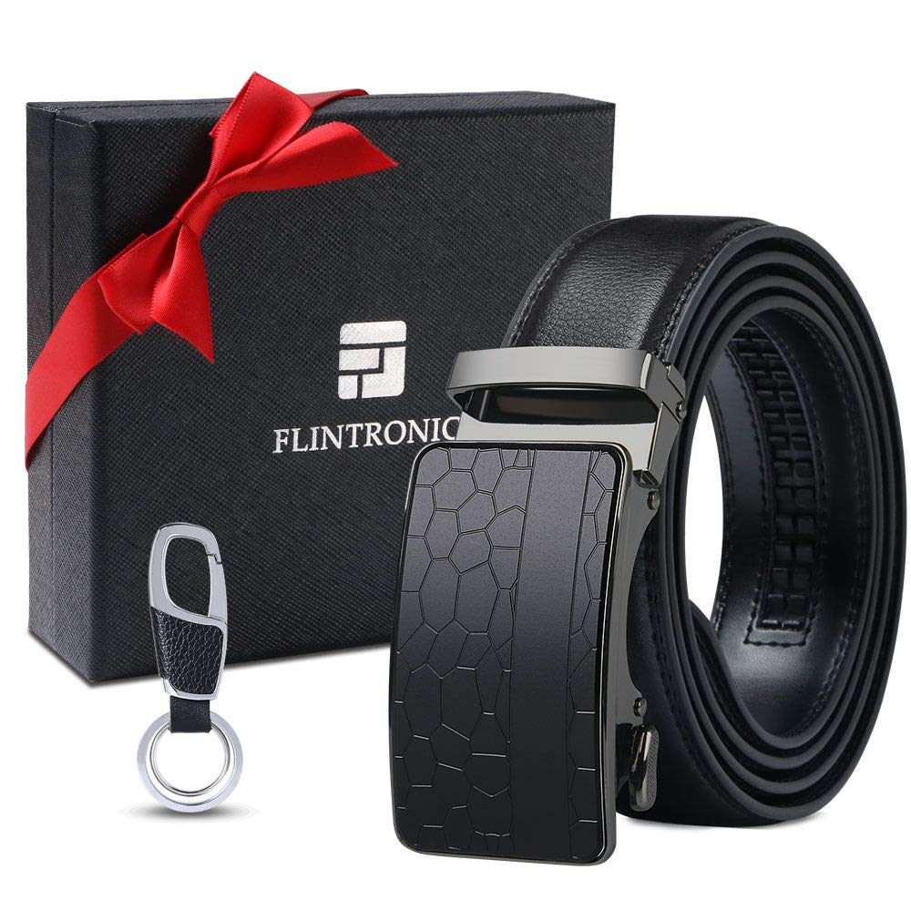 flintronic Herren Gürtel,Hochwertiges Leder material Ratsche Automatik Gürtel für Männer Ledergürtel Breite 3.5cm Länge 130CM-Schwarz (inkl Schlüsselbund & Geschenkbox)