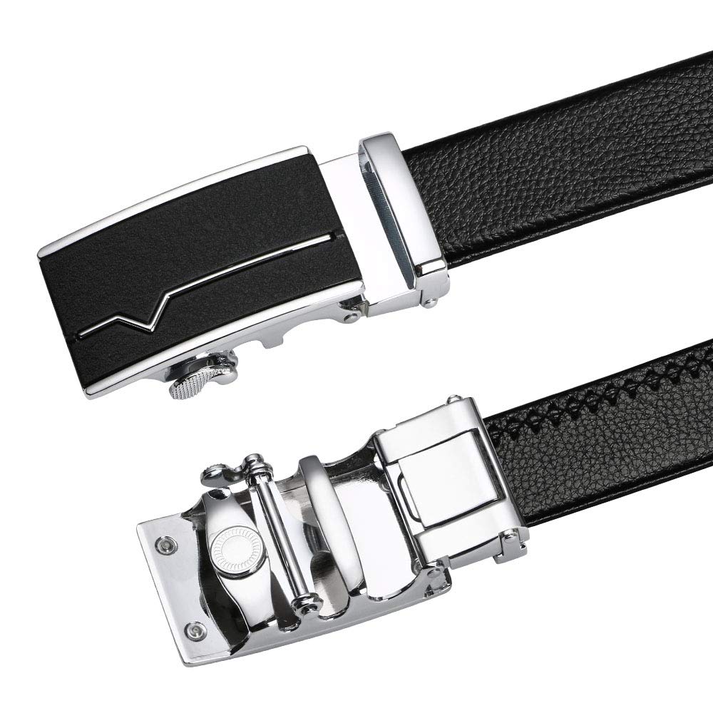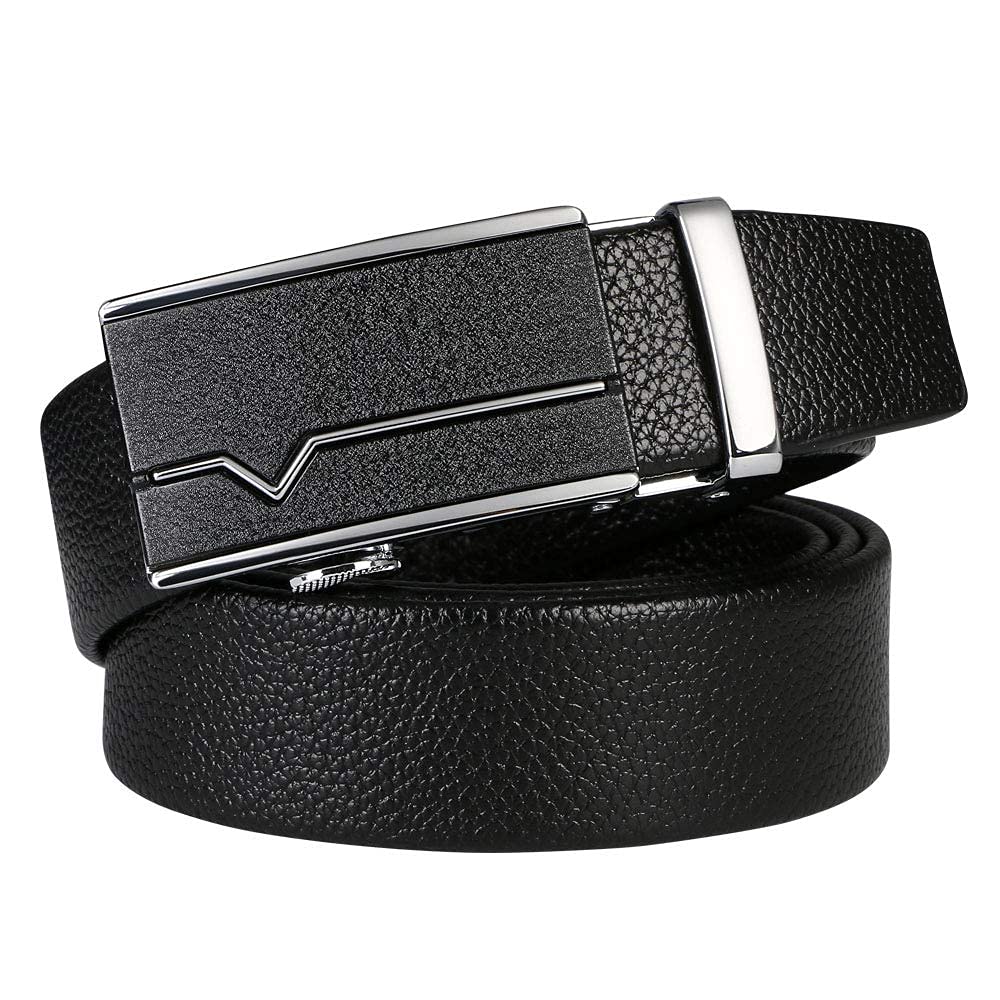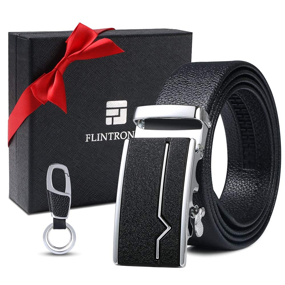 flintronic Herren Gürtel,Hochwertiges Leder material Ratsche Automatik Gürtel für Männer Ledergürtel Breite 3.5cm Länge 130CM-Schwarz (inkl Schlüsselbund & Geschenkbox)