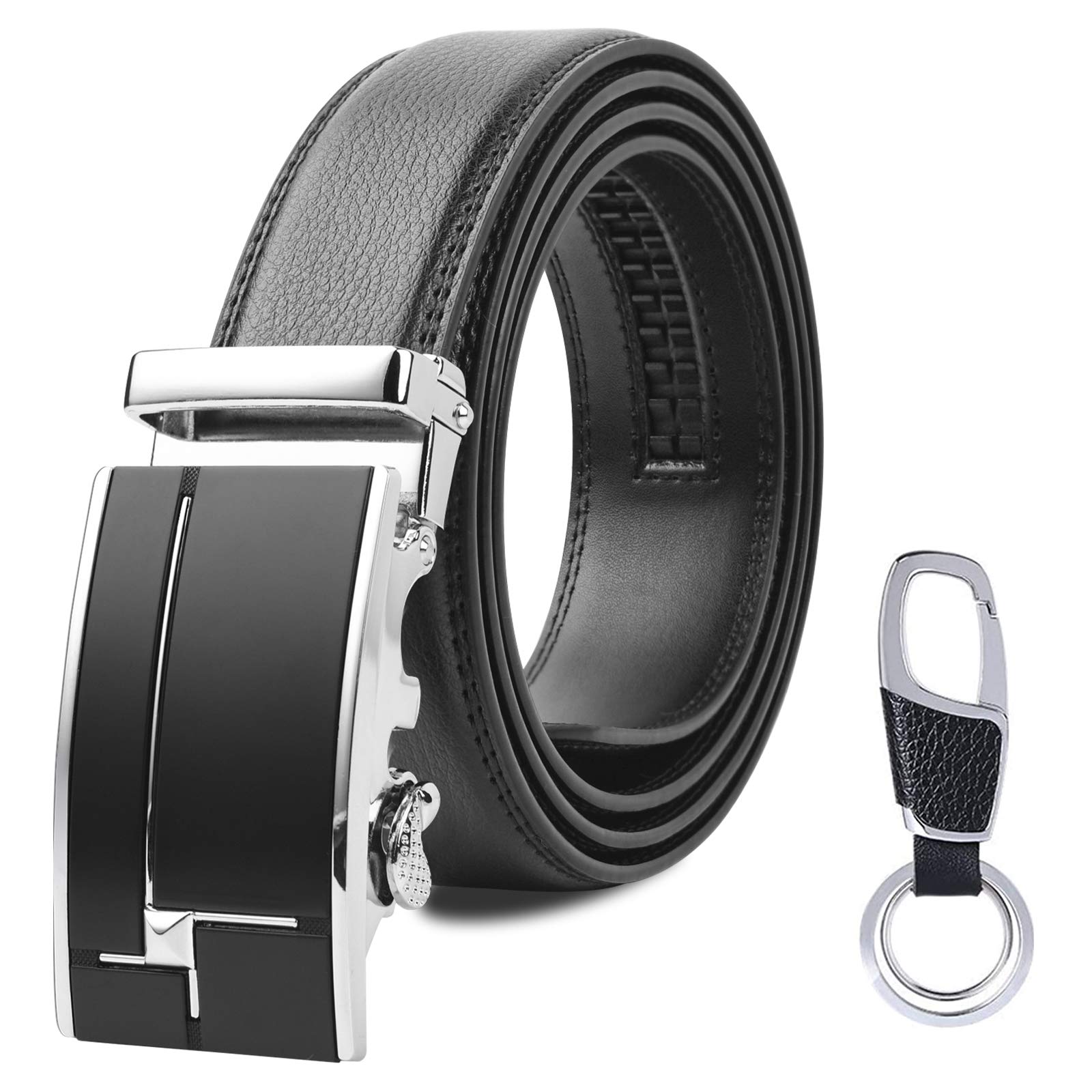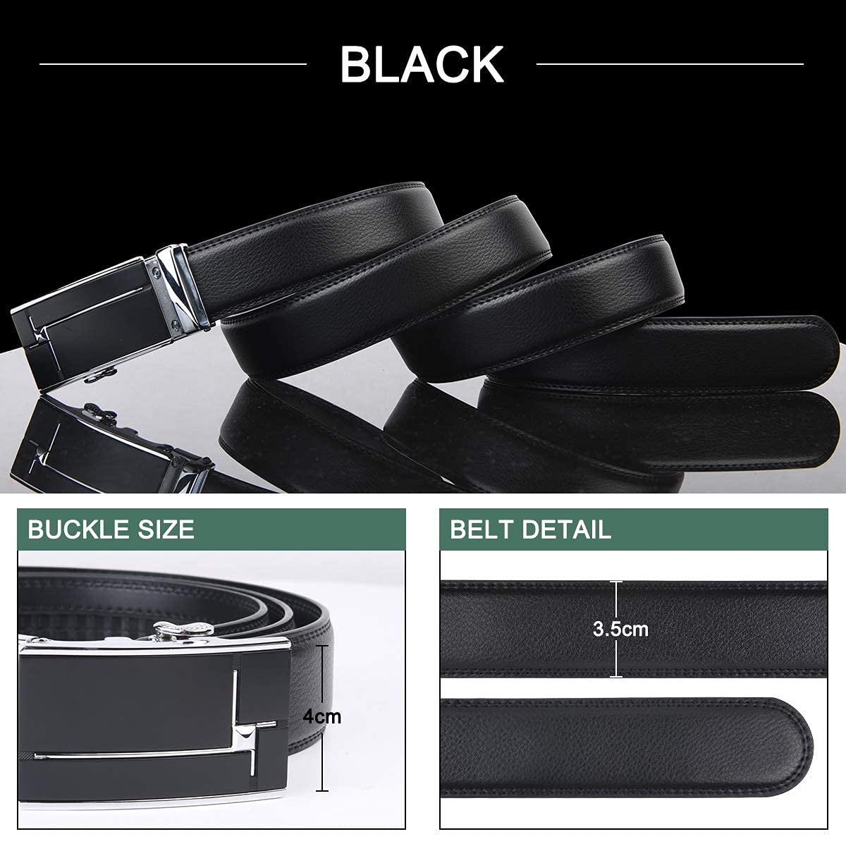 flintronic Herren Gürtel,Hochwertiges Leder material Ratsche Automatik Gürtel für Männer Ledergürtel Breite 3.5cm Länge 130CM-Schwarz (inkl Schlüsselbund & Geschenkbox)