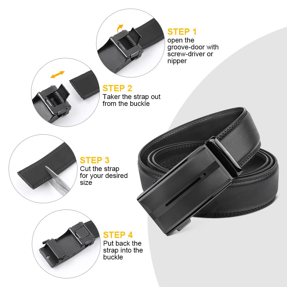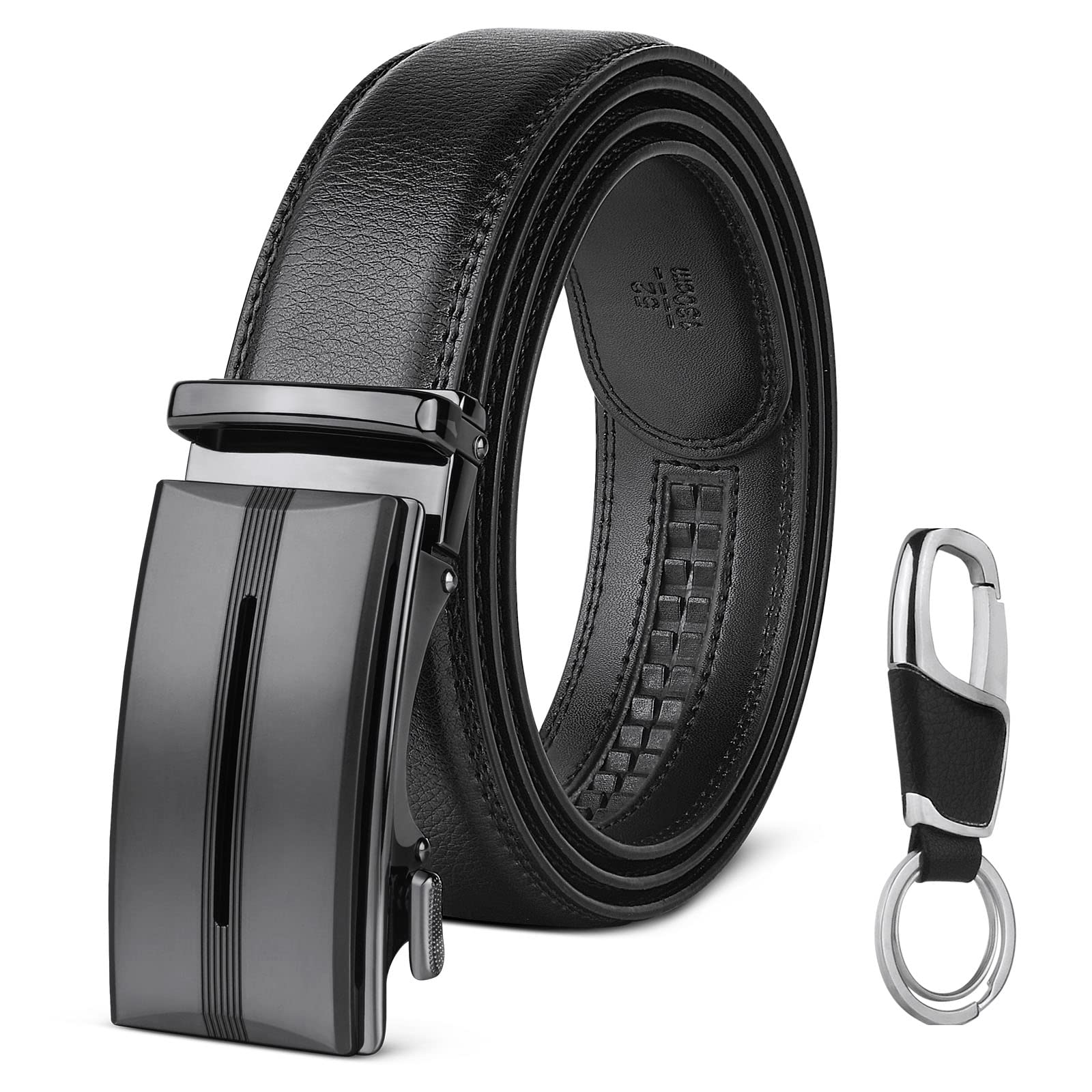 flintronic Herren Gürtel,Hochwertiges Leder material Ratsche Automatik Gürtel für Männer Ledergürtel Breite 3.5cm Länge 130CM-Schwarz (inkl Schlüsselbund & Geschenkbox)